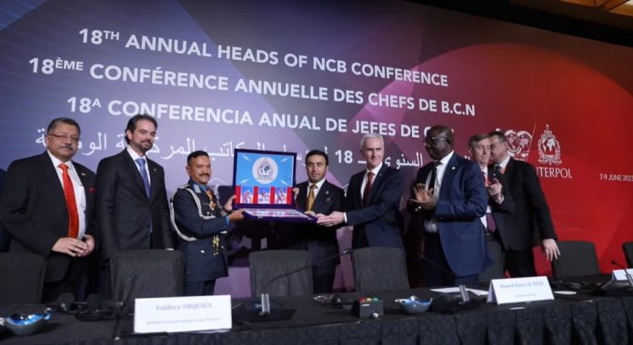 नेपाल प्रहरीका प्रहरी महानिरीक्षक वसन्तबहादुर कुँवरले इन्टरपोलका अध्यक्ष अहमद नासेर अल–राइसी र महासचिव जुर्गेन स्टकलाई विश्वको सर्वोच्च शिखर सगरमाथाको चुचुरोमा फहराइएको इन्टरपोलको झण्डा हस्तान्तरण गर्नुभएको छ ।इन्टरपोल महासचिवालयको आयोजनामा इन्टरपोल सदस्य राष्ट्रहरूका प्रमुखहरूबीच बुधबारदेखि सिङ्गापुरमा सुरु भएको १८औँ हेड अफ नेशनल सेन्ट्रल ब्यूरो (एनसिबी) सम्मेलनका अवसरमा नेपालको तर्फबाट प्रहरी महानिरीक्षक कुँवरले उक्त झण्डा हस्तान्तरण गर्नुभएको हो ।
