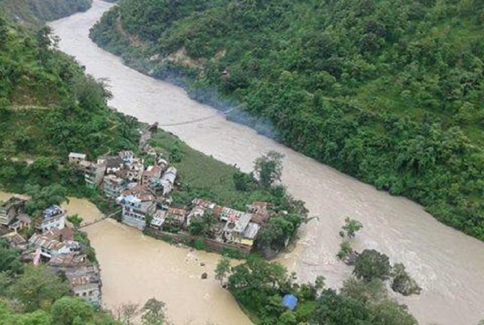 मुस्ताङको कागवेनीमा ठूलो क्षति पु¥याएको कालीगण्डकी आइतबार रातिदेखि यसवर्षकै उच्च बहाबमा बगेको स्थानीयवासीले बताएका छन् । कतिबेला घरसम्मै आएर डुवाउने हो भन्ने चिन्ताले आइतबार रातभर जाग्राम बसेको स्थानीय रवि भट्टराईले बताउनुभयो । कालीगण्डएकी ‘ए’ जलविद्युत् आयोजनाको बाँधका कारण बाढी आउँदा पर्वत, स्याङ्जा र गुल्मी जिल्लाको सिमानामा पर्ने सेतीवेणी बजार डुबानको खतरामा पर्ने गरेको उहाँको भनाइ थियो ।कालीगण्डकी र सेतीखोलाको बहाब बढेर डुबानमा पर्ने चिन्ताले पर्वत र स्याङ्जातर्फका बजार क्षेत्रका झण्डै दुई सय व्यापारी तथा सर्वसाधरण त्रसित बनेका छन् । चौध वर्षअघि कालीगण्डकी र सेतीखोला उर्लेर आउँदा तीन दर्जन घरपरिवार विस्थापित बनेका थिए ।विसं २०६६ असोज २१ मा बजार क्षेत्र डुबानमा परेको घटनाले सधैँ त्रास थप्ने गरेको स्थानीय व्यवसायी विष्णु न्यौपानेले बताउनुभयो । उहाँले विश्वकै ठुलो शालिग्राम शिला डुबे पनि पानी बजारसम्म आइनसकेको जानकारी दिनुभयो ।अहिले पानीको बहाब उच्च बढेको इलाका प्रहरी कार्यालय हुवासले जनाएको छ । बजार क्षेत्रसँगै जोडिएको मन्दिरको सत्तल मुनिको सिँढीसम्म बहाब आइपुगे पनि बजारवासीलाई भने खतरा नभएको प्रहरीले जनाएको छ ।