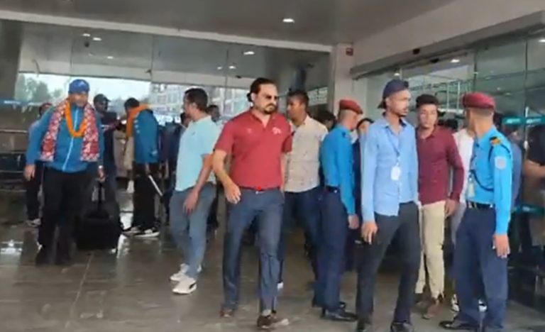 एसिया कप क्रिकेट खेलेर नेपाल फर्केको राष्ट्रिय टोलीको भव्य स्वागत भएको छ ।श्रीलंका र पाकिस्तानमा जारी एसिया कप क्रिकेटमा नेपाल समूह चरणबाट घर फर्केको हो ।नेपाली टोलीलाई स्वागत गर्न सशस्त्र प्रहरीको ब्याण्ड टोलीसमेत विमानस्थलमा लगिएको थियो । ब्याण्ड टोलीले मंगलधुन बजाएर टोलीको स्वागत गरेको थियो । नेपाल क्रिकेट संघका पदाधिकारी तथा क्रिकेट समर्थकले टिमलाई स्वागत गरेका हुन् ।तर पनि समूह चरणमा भारत र पाकिस्तानविरुद्ध निडर र साहसिक प्रदर्शन गरेको भन्दै क्रिकेट समर्थकहरु टोलीलाई स्वागत गर्न विमानस्थल पुगेका थिए ।