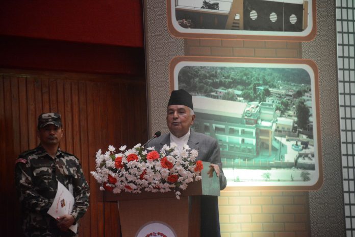 राष्ट्रपति रामचन्द्र पौडेलले मुलुकको विकास र समृद्धिका लागि आफू निरन्तर लागिपर्ने बताउनुभएको छ । दलीय राजनीतिमा नलाग्ने भन्दै उहाँले विकास र सुशासनका लागि सदैव सक्रिय रहने बताउनुभयो ।तनहुँको व्यास नगरपालिका–३ बिपी वनवाटिकामा निर्माण गरिएको दमौली सभागृहको आज उद्घाटन गर्नुहुँदै राष्ट्रपति पौडेलले विकासका कारण मुलुक पछाडि परेकाले विकासबाट हात नझिक्ने बताउनुभयो ।राष्ट्रपति पौडेलले भन्नुभयो, “देशलाई विकास चाहिएको छ, देश पछाडि परेको छ । विकासका लागि म जहाँ पनि बोल्छु, सबैलाई सचेत गराउँछु ।” सुशासन र विकासका लागि सचेत गराउनु आफ्नो जिम्मेवारी रहेको बताउँदै राष्ट्रपति पौडेलले मुलुकका लागि विकास नै पहिलो सर्त रहेको उल्लेख गर्नुभयो ।संविधानको रक्षा गर्नु सबैको दायित्व रहेको बताउँदै राष्ट्रपति पौडेलले स्थायित्व र सुशासनबाट विकास सम्भव रहेको उल्लेख गर्नुभयो । परिवर्तनको रक्षा गर्ने मेरो जिम्मेवारी हो । संविधानको रक्षक भएका नाताले मेरो कदम त्यसतर्फ हुनेछ ।” सबै धर्म र जातजातिको सम्मान गर्नुपर्ने बताउँदै राष्ट्रपति पौडेलले देशलाई बलियो बनाउनेतर्फ लाग्न सबैलाई आग्रह गर्नुभयो ।व्यवस्था बदलिए पनि अवस्था नबदलिएको भन्दै राष्ट्रपति पौडेलले पदमा पुग्नेहरुले देशको हितमा काम गर्नुपर्ने बताउनुभयो ।राष्ट्रपति पौडेलले निमुखा जनताले न्याय पाउनुपर्ने र विपन्नलाई आय चाहिएको भनाइ राख्नुभयो । सबै राजनीतिक दल मिलेर एकाआपसमा सहकार्य गरी काम गर्नुपर्ने बताउँदै राष्ट्रपति पौडेलले दलहरु मिले मात्रै मुलुक बलियो बन्ने धारणा राख्नुभयो । दुई ठूला देशका बीचमा रहेको नेपाललाई एकताको बाटोमा हिँडाउनुपर्छ । सबै दल मिले मात्रै देश बलियो हुन्छ ।”सो अवसरमा शहरी विकास मन्त्री सीता गुरुङले सरकारले पूर्वाधार निर्माणलाई प्राथमिकता दिएको उल्लेख गर्नुभयो । गण्डकी प्रदेशका प्रमुख पृथ्वीमान गुरुङले सबै दलको एकताबाट मात्रै विकास सम्भव रहेको उल्लेख गर्नुभयो ।