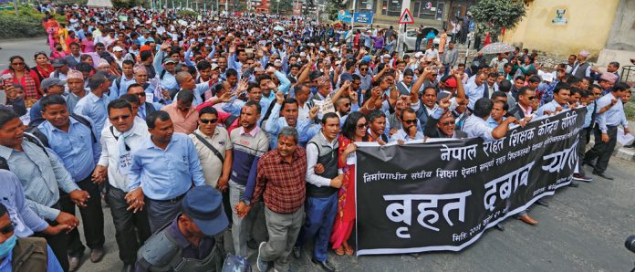 राहत शिक्षकहरुले सडक आन्दोलनलाई आज सोमबार पनि निरन्तरता दिएका छन् ।नेपाल राहत शिक्षक केन्द्रीय समितिको अगुवाइमा राहत शिक्षकहरुले काठमाडौंको माइतीघरदेखि नयाँबानेश्वरसम्म सडकमा प्रदर्शन गरेका छन् ।बानेश्वरमा पुगेर उनीहरुले सडकमा सुतेरै विरोध जनाएका थिए ।सरकार र शिक्षक महासंघबीच ६ बुँदे सहमति भए पनि त्यसले आफूहरुको माग संवोधन नगरेको भन्दै राहत शिक्षकहरुले प्रदर्शनलाई निरन्तरता दिइरहेका छन् ।उनीहरुले ४० हजार राहत शिक्षक, बाल विकासका शिक्षक र पेन्सन पीडित शिक्षकहरु आफूहरुसँग आन्दोलनमा रहेको बताएका छन् ।राहत शिक्षकहरुले शिक्षक महासंघले धोका दिएको भन्दै आफूहरुको माग पूरा नहुँदासम्म आन्दोलन जारी राख्ने बताएका छन् ।