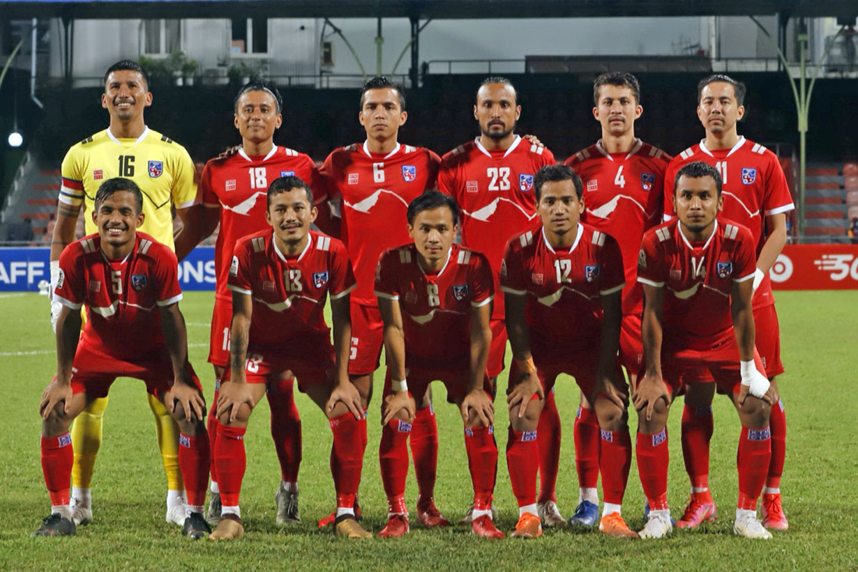 राजधानीमा जारी दक्षिण एसियाली फुटबल महासङ्घ यू–१९ साफ च्याम्पियनशिपमा नेपालले माल्दिम्सलाई पराजित गर्दै प्रतियोगिताको सेमिफाइनलमा प्रवेश गरेको छ ।त्रिपुरेश्वरस्थित दशरथ रङ्गशालामा आज भएको खेलमा नेपालले माल्दिभ्सलाई ४–१ गोल अन्तरले पराजित गर्दै सेमिफाइनलमा पुगेको हो । नेपालको जितमा समीर तामाङले दुई गोल गरे भने प्रशान्त लक्षम र निराजन धामीले समान एक–एक गोल गरे । खेलको पहिलो हाफमै २–० को अग्रता लिएको नेपालले दोस्रो हाफमा पनि थप दुई गोल गर्यो । खेलको १७औँ मिनेटमा नेपालका प्रशान्तले गोल गर्दै नेपाललाई सुरुआती अग्रता दिलाए । उनले करिब ३० यार्डबाट प्रहार गरेको बलले सिधै जाली चुमेको थियो ।त्यस्तै खेलको ३०औँ मिनेटमा नेपालले दोस्रो अग्रता लियो । समिरले गोल गर्दै नेपालको अग्रतालाई दोब्बर बनाए । यसैगरी खेलको ५८औँ मिनेटमा माल्दिभ्सका लायन रसिदले गोल गर्दै खेललाई २–१ को स्थितिमा ल्याए । तर ८८औँ मिनेटमा निराजन धामीले गोल गर्दै नेपाललाई जितको नजिक पुर्याए । त्यसपछि समीरले खेलको दोस्रो हाफको अत्तिरिक्त समयमा व्यक्तिगत दोस्रो गोल गरे ।समूह ‘ए’ बाट सेमिफाइनलमा नेपाल र पाकिस्तान पुगेका छन् । माल्दिभ्स भने यस हारसँगै प्रतियोगिताबाट बाहिरिएको छ ।