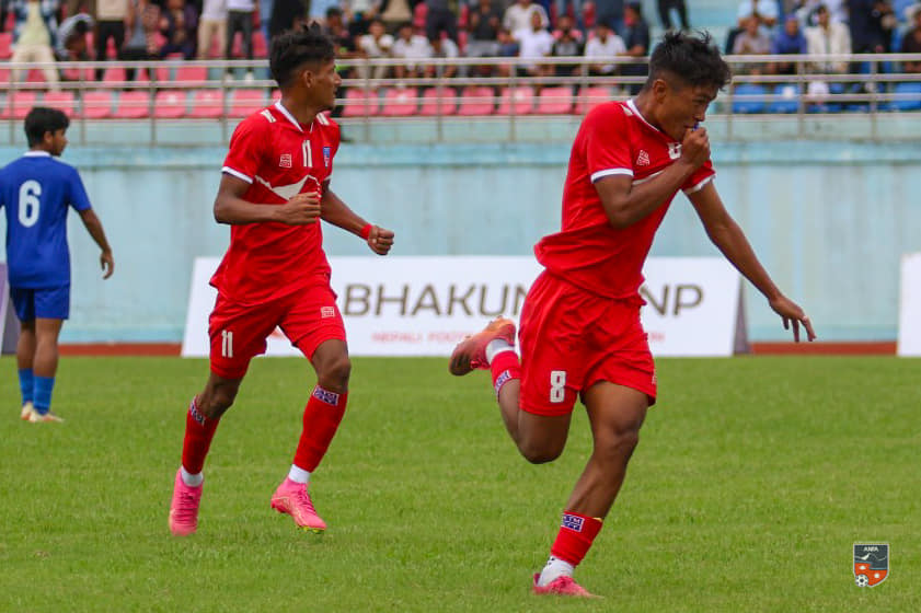 यहाँ जारी यु–१९ साफ च्याम्पियनसिप फुटबल प्रतियोगिताको फाइनल प्रवेशका लागि आज नेपालले भारतको सामना गर्दैछ ।त्रिपुरेश्वरस्थित दशरथ रङ्गशाला मैदानमा आज साझ ५ः३० बजे हुने खेलमा समूह ‘बी’को विजेता भारत र समूह ‘ए’को उपविजेता नेपाल आमने–सामने हुँदैछन् । समूह चरणको खेलमा नेपालले माल्दिभ्सलाई ४–१ गोलअन्तरले पराजित गर्दै सेमिफाइनलमा पुगेको हो भने भारतले भुटानलाई २–१ को अन्तरले पराजित गर्दै सेमिफाइनलमा पुगेको हो ।