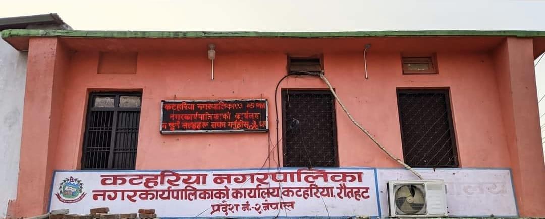 रौतहटको कटहरिया नगरपालिकाको कार्यलय र खानेपानीको उपभोक्ता समितिको विद्युत लाईन काटिएको छ। लामोसमय देखि विद्युत महसुल नबुझाएको कारण नगरको कार्यालय र खानेपानी उपभोक्ता समितिको विधुत लाईन काटिएको हो।विद्युत आपूर्ति नहुँदा पछिलो तीन दिन देखि कटहरिया नगरपालिकाको सम्पूर्ण काम अवरुद्ध भएको छ। कटहरिया ५ का वडा अध्यक्ष सर्फलाल गुप्ताले विद्युत आपूर्ति नहुँदा नगरको कार्यालयकोसम्पुर्ण कामकाज ठप्प भएको बताएका छन्।त्यसैगरी खानेपानीको विद्युत आपूर्ति नहुँदा दीपावली छठ पर्वको अवसरमा कटहरिया ४ र ५ वडाका १६ सय सेवाग्राही शुद्द खानेपानी बाट वञ्चित भएका छन्। नेपाल विद्युत प्राधिकरण मौलापुरका प्रमुख दिनेश यादवले नगरपालिका माथि करिब ४ लाख र खानेपानी उपभोक्ता समिति माथि १६ लाख रुपैयाँ विद्युत महसुल बक्यौता रकम नबुझाउँदा मिटर खोलेर ल्याईएको बताएका छन। कटहरिया नगरपालिकाका प्रमुख प्रशासकीय अधिकृत हरिशंकर कुमारले सिंहले मंगलवार विद्युत प्राधिकरण मौलापुरको नाउँमा तिनलाखको चेक काटेकाके आज देखि विद्युत आपूर्ति हुने बताएका छन। उता खानेपानी उपभोक्ता समितिका अध्यक्ष योगेन्द्र साहले कटहरिया नगरपालिकाले पानीको महसुल नगरपालिकाले निःशुल्क घोषणा गरेको तर विधुत महसुल नबुझाएको कारण समस्या भएको बताएका छन्।