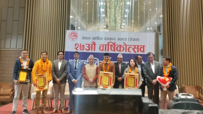 यस वर्षको सेजन अवार्ड कान्तिपुर दैनिकका मातृका दाहाल र देवेन्द्र भट्टराईलाई संयुक्तरूपमा प्रदान गरिएको छ । नेपाल आर्थिक पत्रकार समाज (सेजन)ले हरेक वर्ष आर्थिक विधाका उत्कृष्ट समाचारलाई यो अवार्ड प्रदान गर्दै आएको छ ।कान्तिपुर दैनिकमा प्रकाशित नक्कली भुटानी शरणार्थी प्रकरणबारेको समाचार लेखनका लागि दाहाल र भट्टराईलाई सेजन अवार्ड प्रदान गरिएको निर्णायक समितिका सदस्य पूर्वसचिव कृष्ण ज्ञवालीले जानकारी दिनुभयो ।भोला चालिसे लिबरल जर्नलिजम अवार्ड हिमाल खबरका रमेश कुमार न्यौपानेलाई दिइएको छ । त्यस्तै सेजन ब्रोडकास्ट अवार्ड उज्यालो रेडियोका अर्जुन पोखरेल, सेजन डिजिटल मिडिया अवार्ड क्लिकमाण्डुका राजेश बर्मा र सेजन छापा माध्याम अवार्ड नयाँ पत्रिका दैनिकका मुना कुँवरलाई प्रदान गरिएको छ ।‘स्व सञ्जय न्यौपाने रिसर्च ग्रान्ट कान्तिपुर दैनिकका यज्ञ बञ्जाडेलाई उपलब्ध गराइएको छ । सेजन डेका अवसरमा वार्षिक प्रकाशन ‘अर्थनीति’ पनि विमोचन भएको छ ।