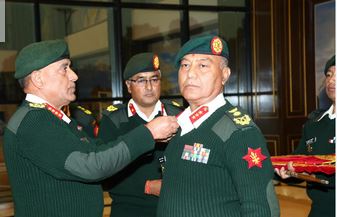 काठमाडौँ, २९ मङ्सिर : प्रधानसेनापति प्रभुराम शर्माले रथी दर्जामा बढुवा हुनुभएका उपरथी अशोकराज सिग्देललाई आज रथी दर्जाको दज्र्यानी चिह्न प्रदान गर्नुभएको छ । मन्त्रिपरिषद्को बिहीबारको बैठकले उहाँलाई उक्त पदमा बढुवा गर्ने निर्णय गरेको थियो । विसं २०२३ माघ १९ गते कपिलवस्तुमा जन्मनुभएका रथी सिग्देल २०४३ फागुन ३ गते नेपाली सेनाको अधिकृत क्याडेट दर्जामा प्रवेश गरी २०४५ जेठ १९ गते नेपाली सैनिक प्रतिष्ठानबाट सहायक सेनानी हुनुभएको थियो । आजै जङ्गी अड्डामा आयोजित कार्यक्रममा प्रधानसेनापतिले रथी सिग्देलका साथै उपरथीमा बढुवा हुनुभएका सहायक रथी सन्तोष वल्लभ पौडेललाई पनि दज्र्यानी चिह्न प्रदान गर्नुभयो । रथी सिग्देल बलाधिकृत र उपरथी पौडेल पश्चिम पृतनापतिमा नियुक्त हुनुभएको छ ।