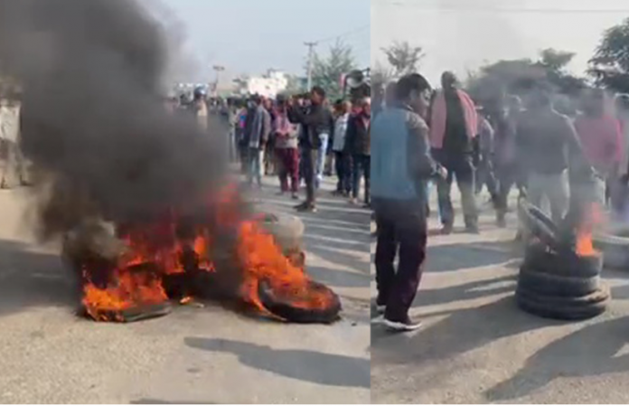 बाराको सिम्रौनगढ नगरपालिकामा गत बुधबार भएको प्रदर्शनमा स्थानीय युवक लक्ष्मी मुखिया विनको मृत्यु भएको विषयलाई लिएर आज निजगढमा पूर्वपश्चिम राजमार्ग अवरुद्ध गरिएको छ ।सिम्रौनगढ नगरपालिका वडा नम्बर १ नामसागरा ढाट निवासी २५ वर्षीय विनको प्रदर्शनका क्रममा प्रहरीले चलाएको गोली लागेर मृत्यु भएको थियो । प्रमुख प्रशासकीय अधिकृतलाई नगरपालिकाले हाजिर गराएको विरोधमा उत्रिएका शिक्षक, कर्मचारीको प्रदर्शन उग्र बन्दा प्रहरीसँग झडप भएको थियो । त्यस क्रममा प्रहरीले हवाई फायर गरेको थियो भने प्रहरीले चलाएको गोली लागि उनको मृत्यु भएको थियो ।सोही घटनालाई लिएर आज पीडित परिवारका साथै स्थानीयले राजमार्ग बन्द गराएका हुन् । उनीहरुले घटनाको छानबिन गरी गोली चलाउने सुरक्षाकर्मीमाथि कारबाही गर्नुपर्ने, मृतक परिवारलाई राहत दिनु पर्ने, मधेशका मुख्यमन्त्री र नगपालिकाका मेयरले राजीनामा पर्नेलगायतका माग राखेका छन् ।सडक अवरुद्ध पारेको प्रदर्शनकारीहरुले टायर बाल्नुका साथै नाराबाजी पनि गरिरहेका छन् ।मृतक मुखियाको शव हाल वीरगन्जको नारायणी अस्पतालमा राखिएको छ ।