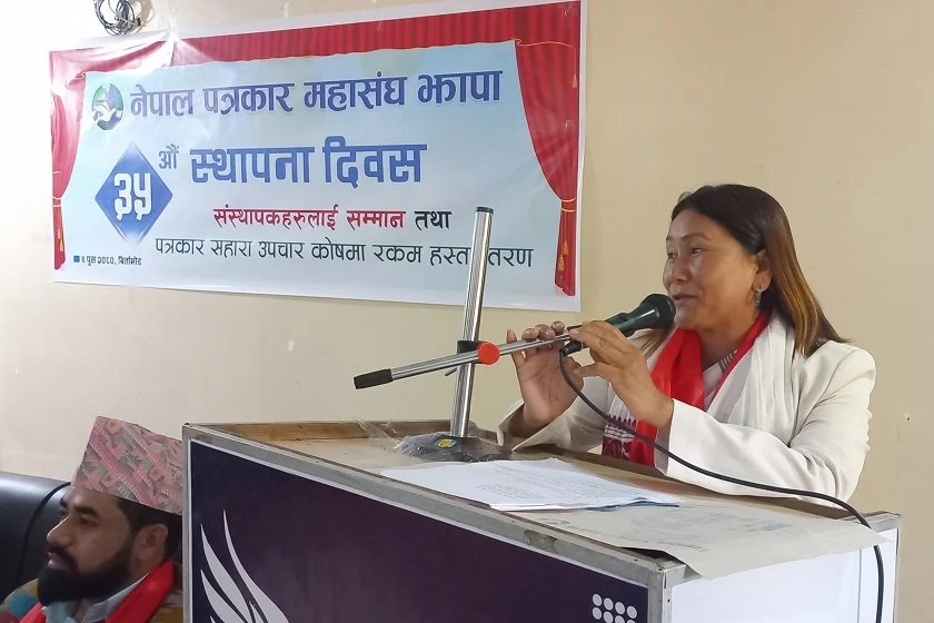 प्रतिनिधिसभाका उपसभामुख इन्दिरा रानामगरले पत्रकारले सुशासनका पक्षमा कलम चलाउनुपर्नेमा जोड दिनुभएको छ ।नेपाल पत्रकार महासङ्घ झापाको ३५औँ स्थापना दिवसका अवसरमा आज आयोजित संस्थापकलाई सम्मान तथा पत्रकार सहारा उपचार कोषमा रकम हस्तान्तरण कार्यक्रममा उहाँले मुलुकको समृद्धिका लागि पत्रकारले भ्रष्टाचारविरुद्ध र सुशासनका पक्षमा कलम चलाउनुपर्ने बताउनुभयो ।विकसित मुलुकमा भ्रष्टाचार न्यून हुनुमा पत्रकारहरुले खेलेको भूमिका महत्त्वपूर्ण हुने उपसभामुख रानामगरको भनाइ थियो ।लोकतन्त्र आउनुमा पत्रकारको भूमिका महत्त्वपूर्ण छ ।” उहाँले कानुन मात्र बनाएर सुशासन नआउने भन्दै सोको कार्यान्वयनको पक्ष मजबुद हुनुपर्ने उल्लेख गर्नुभयो ।कार्यक्रममा संस्थापक सचिव तारा बराल, सदस्य गोविन्दचन्द क्षेत्री र मोहन ढुङ्गानालाई सम्मान गरिएको थियो । उहाँहरुलाई प्रमुख अतिथि रानामगरले सम्मानपत्र प्रदान गर्नुभयो । कार्यक्रममा विभिन्न दाताले पत्रकार सहारा उपचार कोषका लागि रू १० लाख सहयोग प्रदान गर्नुभएको छ ।कार्यक्रममा सम्मानित एवं संस्थापक सचिव बराल र कोषमा सहयोगकर्ता विनोद बस्नेतले शुभकामना मन्तव्य राख्नुभएको थियो । महासङ्घ झापाका अध्यक्ष एकराज गिरीको अध्यक्षतामा भएको कार्यक्रमको स्वागत उपाध्यक्ष सुशीला सङ्ग्रौला, औचित्यमाथि प्रकाश उपाध्यक्ष केशव भट्टराई र सञ्चालन सचिव डिकेश लामाले गर्नुभएको थियो ।