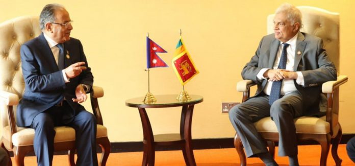 प्रधानमन्त्री पुष्पकमल दाहाल ‘प्रचण्ड’ र श्रीलङ्काका राष्ट्रपति रनिल विक्रमासिङ्घेबीच भेटावार्ता भएको छ । असंलग्न आन्दोलन (नाम) का सदस्य राष्ट्रको १९औँ सम्मेलनमा भाग लिन युगाण्डाको कम्पालामा रहनुभएका उहाँहरुबीच आज द्विपक्षीय भेटवार्ता भएको हो । भेटमा प्रधानमन्त्री दाहालले असंलग्न परराष्ट्र नीतिका मामिलामा नेपाल र श्रीलङ्का एक ठाउँमा उभिएकाले क्षेत्रीय सहकार्य र आपसी हितमा दुवै देशको सहकार्य आवश्यक रहेकामा जोड दिनुभयो । दक्षिण एशियाली क्षेत्रीय सहयोग सङ्गठन (सार्क) लाई सक्रिय र गतिशील तुल्याउन आवश्यक रहेकामा जोड दिँदै प्रधानमन्त्री दाहालले त्यसका निम्ति साझा भूमिका खेल्नुपर्ने बताउनुभयो । सार्कलाई गतिशील तुल्याएर क्षेत्रीय सहकार्य र साझा हितका विषयहरू सम्बोधन गर्नुपर्नेमा उहाँले जोड दिनुभयो । सो क्रममा श्रीलङ्काका राष्ट्रपति विक्रमासिङ्घेले सार्कलाई सक्रिय तुल्याउन आफूहरूको सहयोग रहने बताउँदै क्षेत्रीय हित र साझा आर्थिक क्रियाकलापमा नेपाल र श्रीलङ्काबीच सहकार्य आवश्यक रहेकामा जोड दिनुभएको प्रधानमन्त्री दाहालको सचिवालयले जनाएको छ । भेटमा प्रधानमन्त्री दाहालसँगै परराष्ट्रमन्त्री नारायणप्रकाश साउद, प्रधानमन्त्रीका परराष्ट्र मामिला सल्लाहकार डा रूपक सापकोटा, परराष्ट्र सचिव सेवा लम्साललगायत परराष्ट्र मन्त्रालयका अधिकारी उपस्थित हुनुहुन्थ्यो ।