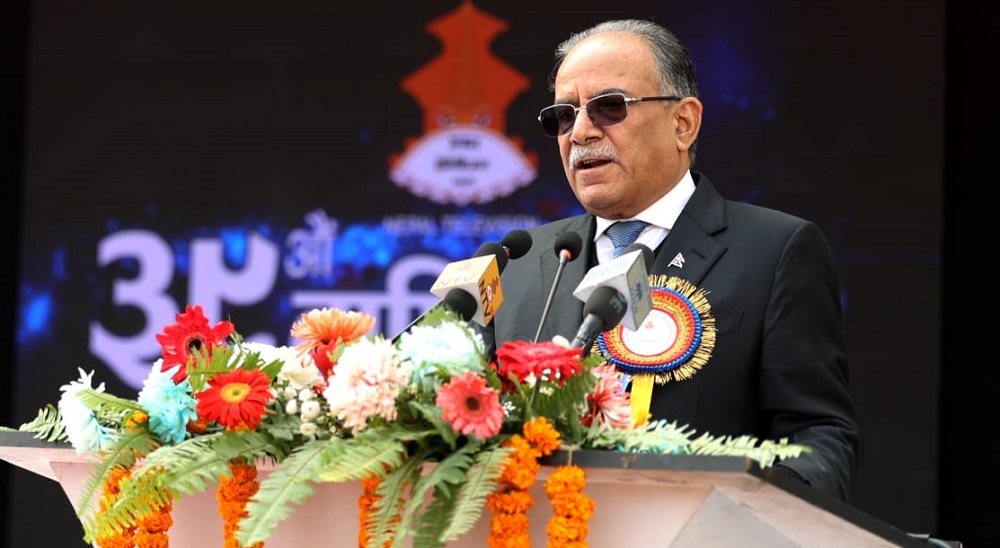 प्रधानमन्त्री पुष्पकमल दाहाल ‘प्रचण्ड’ले लोकतन्त्र र नागरिक अधिकारलाई सर्वोपरि राखेको वर्तमान सरकारले अभिव्यक्ति स्वतन्त्रतालाई सदैव सुरक्षित गर्ने बताउनुभएको छ । म नियन्त्रण र निर्देशनमा होइन, निर्विकल्प लोकतान्त्रिक अभ्यासमा विश्वास गर्छु । त्यसैले लोकतन्त्र, नागरिक अधिकार र अभिव्यक्ति स्वतन्त्रताको आधारभूत मान्यतालाई आत्मसात् गरिएका विषयवस्तुहरू नेपाल टेलिभिजनमा देख्न चाहन्छु ।” देशकै पहिलो टेलिभिजनले सूचना तथा सञ्चार क्षेत्रमा आएको परिवर्तनअनुसार समयानुकूल बनाउनुपर्नेमा जोड दिँदै प्रधानमन्त्रीले आफ्ना उत्पादन र प्रसारणलाई नयाँ प्रविधितर्फ व्यापकरूपमा स्थापित गर्न ढिला गर्नुहुँदैन भन्नुभयो । आम दर्शकको रूचिमा आधारित भएर विषयवस्तु तयार पार्नुपर्नेमा जोड दिँदै उहाँले संस्थानको विकासका लागि दीर्घकालीन योजना र स्पष्ट दृष्टिकोणका साथ अगाडि बढ्न नेपाल टेलिभिजनलाई सुझाव दिनुभयो । टेलिभिजन र रेडियो नेपाललाई एकीकरण गरेर सार्वजनिक सेवा प्रसारण संस्था बनाउने गरी संसद्मा पेस गरिएको विधेयकमा समायानुकूल परिमार्जनसहित पारित गर्ने तयारी गरिएको बताउँदै प्रधानमन्त्रीले भन्नुभयो, “आगामी दिनका लागि सकारात्मक प्रभाव पार्ने योजनाको सङ्कल्प तयार गर्नुहोस्, यसमा मेरो र सरकारको सहयोगी भूमिका रहनेछ । टेलिभिजन भनेको ‘प्रविधि र प्रतिभा’को संयोजन हो । प्रविधिमा आएको परिवर्तनले दर्शकले एक दशकअघिको समयजस्तो कार्यक्रम र टेलिभिजन च्यानललाई कोठाको टिभी सेटमा कुरेर बस्ने छैनन् ।” उहाँले दर्शकको रूचि र अनुकूल प्रविधिमा हेर्ने सुविधाको सुनिश्चितता गर्ने तथा उच्च व्यावसायिकता र सृजनशीलता अपनाउन पनि सुझाव दिनुभयो । सरकारले नवीनतम् प्रविधिको प्रयोगबाट सञ्चालित मिडियालाई विश्वसनीय, जिम्मेवार र जवाफदेही बन्न स्वनियमनको प्रणाली अवलम्बन गर्नुपर्छ भनेर आग्रह गर्दै आएको प्रधानमन्त्री दाहालले स्मरण गराउनुभयो । दीर्घकालमा न्यू–मिडियाको विश्वसनीयतालाई बलियो बनाउँदै नयाँ प्रविधिको प्रयोगबाट हुने सूचना सामग्रीको सम्प्रेषणलाई समेत थप प्रभावकारी बनाइने बताउँदै प्रधानमन्त्रीले भन्नुभयो, “पत्रकारिता क्षेत्रको विकास र प्रविधिको प्रयोगलाई प्रोत्साहित गरेको सरकारले केही नयाँ नीतिगत व्यवस्था नियन्त्रणका लागि नभई, नियमन र व्यवस्थापनका लागि हुन् ।” उहाँले सामाजिक सञ्जाल विस्तारित हुँदै गर्दा मूलधारका सञ्चारमाध्यम र सञ्चारकर्मीको जिम्मेवारी अझ बढ्दै गएको बताउनुभयो । गलत र असन्तुलित सूचना र समाचारले व्यक्ति पीडित हुने, परिवार र समाज विखण्डित हुने अनि राज्य कमजोर बन्दै जाने जोखिम रहन्छ । त्यसैले सही, सन्तुलित र सत्य सूचना र समा