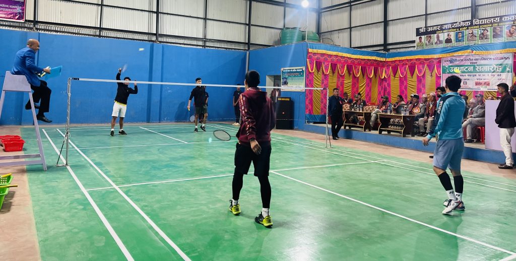 कालीकोटमा कर्णाली प्रदेशस्तरीय खुला पुरुष ब्याटमिन्टन प्रतियोगिता सुरु भएको भएको छ । खाडाँचक्र नगरपालिका–१ मा रहेको खेलकुद विकास समितिको कबर्डहलमा प्रतियोगिताको सुरु भएको हो । कर्णालीका पूर्वमुख्यमन्त्री महेन्द्रबहादुर शाहीले खेलको उद्घाटन गर्दै खेलकुद राष्ट्रको गौरवको विषय र खेलाडी गहना भएको कर्णाली बताउनुभयो । उहाँले प्रदेशस्तरीय खेलकुद कालीकोटमा हुनु गौरवको विषय भएको बताउनुभयो । “खेलकुद राष्ट्रको पहिचान हो । खेलाडी देशका गहना हुन्दे,शको राम्रो छवी बनाउन खेलको भूमिका महत्वपूर्ण हुन्छ । खेलाडीले सिङ्गो राष्ट्रको प्रतिनिधित्व गरेका हुन्छन् ।” उद्घाटन कार्यक्रममा खेलकुद विकास समितिका सदस्य–सचिव विश्वामित्र सञ्ज्यालले दशौँ राष्ट्रिय खेलकुद कर्णालीमा हुन लागेको भन्दै उक्त प्रतियोगितामा विभिन्न खेल खेलाउन तयारी भइरहेको बताउनुभयो । “खेलकुद प्रतियोगिता नजिकिएपछि हतारमा तयारी गर्ने हाम्रो बानी नै बनेको छ । अहिलेदेखि दशौँ खेलकुदको व्यापक तयारी गरेका छौँ”, उहाँले भन्नुभयो, “त्यसका लागि यो अभ्यास खेल पनि हुनसक्छ ।” आजदेखि सुरु भएको प्रतियोगिता यही माघ २८ गतेसम्म सञ्चालन हुने कालीकोट ब्याटमिन्टन सङ्घका अध्यक्ष वीरेन्द्रबहादुर शाहीले जानकारी दिनुभयो । उहाँका अनुसार प्रतियोगितामा रु ५१ हजार एक सय ११ को प्रथम पुरुस्कार, दोस्रो पुरुस्कार रु ३१ हजार एक सय ११ र रु १५ हजार एक सय ११ तेस्रो पुरुस्कार रहेको छ । जिल्लामा रहेका नौवटा स्थानीय तहको आर्थिक सहयोगमा ब्याटमिन्टन सङ्घले आयोजना गरेको प्रतियोगितामा कर्णाली प्रदेशका १० वटै जिल्लाका खेलाडीको सहभागिता रहेको आयोजकले जनाएको छ ।
