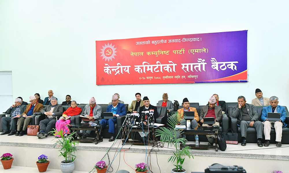 नेकपा (एमाले) को जारी केन्द्रीय कमिटीको सातौँ पूर्ण बैठकमा प्रस्तुत अवधारणा र कार्ययोजनामाथि आज समूहगत छलफल जारी रहेको छ । बैठकमा प्रस्तुत अवधारणामाथि निचोडमा पुग्न स्थायी कमिटीका सदस्यहरु रहेको एक, सात प्रदेशका सात र उपत्यका तथा सम्पर्क विशेष, जनसङ्गठन, प्रवासको एक गरी नौवटा समूह विभाजन गरिएको थियो । समूहगत छलफलमा उठेका विषयलाई निष्कर्षका रुपमा बैठकमा प्रस्तुत गर्न भूगोलका सात प्रदेशमा सम्बन्धित प्रदेश अध्यक्ष, उपत्यका तथा सम्पर्क विशेष, जनसङ्गठन, प्रवास क्षेत्रमा पेम्बा लामा र स्थायी कमिटी समूहका लागि काशीनाथ अधिकारीलाई टोली नेता चयन गरिएको केन्द्रीय प्रचार तथा प्रकाशन विभागका सचिव गगन विष्टले जानकारी दिनुभयो । सो पार्टीको केन्द्रीय कार्यालय, च्यासलमा भएको बैठकमा पार्टीको शुद्धीकरण र सुदृढीकरण सम्बन्धमा वरिष्ठ उपाध्यक्ष ईश्वर पोखरेल, जनवादी केन्द्रीयताको सङ्गठनात्मक सिद्धान्त र जनआधारित कार्यकर्ता पार्टीको मर्मलाई बुझ्ने र कार्यान्वयन गर्ने चुनौती सम्बन्धमा उपाध्यक्ष विष्णुप्रसाद पौडेल, पार्टीको सङ्गठनात्मक कामको समीक्षा सम्बन्धमा महासचिव शङ्कर पोखरेल र जनसरोकार जनदबाब सम्बन्धमा उपमहासचिव प्रदीपकुमार ज्ञवालीले आज अवधारणासहितका कार्ययोजना प्रस्तुत गर्र्नुभएको थियो । बैठकमा झुलाघाट– चिवाभञ्ज्याङ ‘समृद्धिका लागि सङ्कल्प यात्रा’ र पार्टीको सङ्गठनात्मक सुदृढीकरण र विस्तार अभियान ‘मिसन ग्रासरुट’ अभियानका सकारात्मक प्रभावका विषयमासमेत समीक्षा हुने जनाइएको छ ।