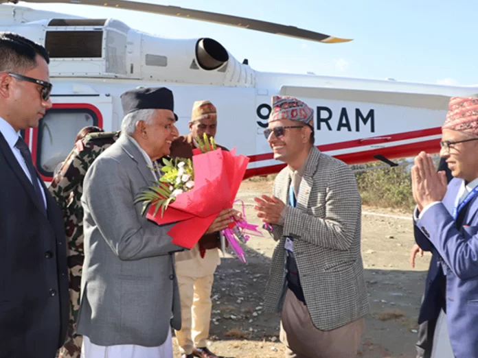 राष्ट्रपति रामचन्द्र पौडेल बागलुङको पञ्चकोटमा आउनुभएको छ । हिजोदेखि यहाँ प्रारम्भ भएको ब्रह्माण्डीय महायज्ञमा सहभागी हुन राष्ट्रपति यहाँ आउनुभएको हो । उहाँलाई प्रमुख जिल्ला अधिकारी खगेन्द्र रिजालले स्वागत गर्नुभएको थियो । राष्ट्रपति पौडेल पञ्चकोटमा राखिएको पाँच हजार पाँच सय ५५ किलोको महाघण्ट उद्घाटनका लागि बागलुङ आउनुभएको हो । पञ्चकोटमा अनन्तश्री ब्रह्माण्डीय महायज्ञ सञ्चालन भएको छ । बुधबारदेखि सुरु भएको महायज्ञमा राष्ट्रपति पौडेलले अर्चना गर्ने कार्यक्रम छ । पञ्चकोटलाई धार्मिक पर्यटकीय गन्तव्यका रुपमा विकास गर्न यहाँ महाघण्ट राखिएको हो । विसं २०७१ देखि पञ्चकोटमा धार्मिक संरचना बनाउन सुरु गरिएको थियो । गत साता महाघण्टलाई पञ्चकोट ल्याइएको थियो । पञ्चकोटमा अहिलेसम्म सिस महल, गण्डकीमाताको मन्दिर, यज्ञशाला, हनुमानको विशाल मूर्तिलगायत दर्जनौँ धार्मिक संरचना बनिसकेका छन् । पञ्चकोटमा निर्माण गर्न लागिएको एक सय आठ फिट अग्लो गण्डकी विश्वशान्ति कलशको नजिकै महाघण्ट राखिएको छ । महाघण्ट बनाउन करिब रु दुई करोड खर्च लागेको अनुमान गरिएको छ ।