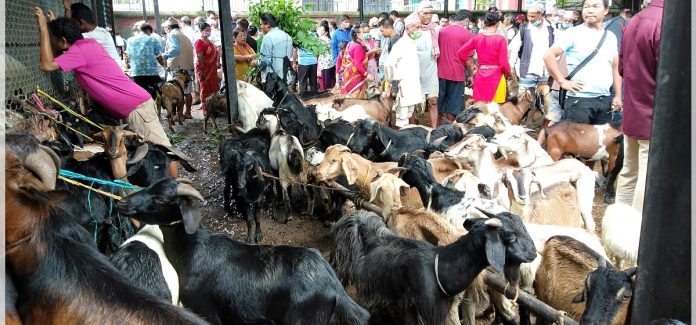 धरान उपमहानगरपालिका–१३ स्थित कृषिउपज बजारमा दैनिक उपभोग्य वस्तुका साथै खसी, बोका किनबेच बढ्न थालेको छ । साताको दुई दिन खसी, बोकाको व्यापार हुने कृषि बजारमा तराईका ग्रामीण र पहाडी भेगबाट व्यापारी आउने गरेका छन् । मोरङको केराबारी गाउँपालिकाबाट खसी, बोका बिक्री गर्न धरान आउनुभएका जय लिम्बूले दुई वर्षदेखि पशुपालन गर्दै आउनुभएको छ । “केराबारीमा महिनाको दुई पटक खसी, बोका बिक्री गर्दै आएको छु । यहाँ पहिलो पटक आएकाले चार वटा खसी मात्र ल्याएको छु”, उहाँले भन्नुभयो, “साना खसी रहेकाले जोडीको रु १५ हजारमा बिक्री गरिरहेको छु ।” उहाँका अनुसार अहिले फार्ममा १६ वटा खसी छन् । धनकुटा सागुडीगडी–७ का किसान ममता राईले धरानस्थित कृषि बजारमा खसी, बोका बिक्री गर्न सधैँ आउने गरेको सुनाउनुभयो । खसी, बोका बिक्रीबाट वार्षिक रु छ लाखभन्दा बढी आम्दानी भइरहेको उहाँले जानकारी दिनुभयो । पशुपालन पुख्र्यौली पेसा भएकाले यसलाई निरन्तरता दिइएको राईले बताउनुभयो । “घाँसभन्दा अन्न र दाना बढी खुवाउने गरेकी छु । घाँस खुवाउँदाको तुलनामा खर्च बढी भए पनि प्रशस्त नाफा हुने गरेको छ”, उहाँले भन्नुभयो । मोरङको कानेपोखरीबाट व्यापारी चन्द्र खड्का प्रत्येक साता कृषि बजारमा खसी, बोका किन्न आउनुहुन्छ । एक सयदेखि एक सय ५० वटासम्म खसी, बोका किनेर लैजाने गरेको उहाँले जानकारी दिनुभयो । “यहाँबाट किनेका खसी, बोका जिल्ला बाहिर निर्यात गर्दै आएको छु । यसरी खसी, बोका खरिद गरी बिक्री गर्न थालेको २३ वर्ष भइसकेको छ”, उहाँले भन्नुभयो । काठमाडौँ, जनकपुर, लहान, इटहरी, इनरूवा पोखरालगायत क्षेत्रमा खसी, बोका बिक्री गर्ने गरेको खड्काले सुनाउनुभयो । उहाँका अनुसार सबै खर्च कटाएर मासिक रु ७० हजारसम्म नाफा हुने गरेको छ । बिहीबार र शुक्रबार लाग्ने उक्त खसी बजारबाट सतामा करिब तीस हजारभन्दा बढी खसी, बोका बिक्री हुने गरेको कृषिउपज बजार व्यवस्थापक अध्यक्ष लक्ष्मण भट्टराईले जानकारी दिनुभयो । उहाँका अनुसार चालु आर्थिक वर्षको असारको १० गतेसम्ममा रु दुई अर्बको कारोबार भएको छ । व्यवस्थापक अध्यक्ष भट्टराईले भन्नुभयो, “पछिल्लो समय धरानमा पशुपालन बढेसँगै खसी, बोकाको किनबेच पनि बढिरहेको छ । वार्षिक एक लाख ६० हजार वटासम्म बिक्री हुने गरेको छ ।” धनकुटा, भोजपुर, सङ्खुवासभा, पाँचथर, तेह्रथुमका साथै तराईका इटहरी, मोरङको कानेपोखरी, बेलबारीलगायत स्थानबाट कृषक तथा व्यापारी किनबेचका लागि यहाँ आउने गरेका उहाँको भनाइ छ । यहाँबाट मुलुकको ठूला सहरका साथै भारतसम्म खसी, बोका निर्यात हुने गरेको उहाँले जानकारी दिनुभयो । —