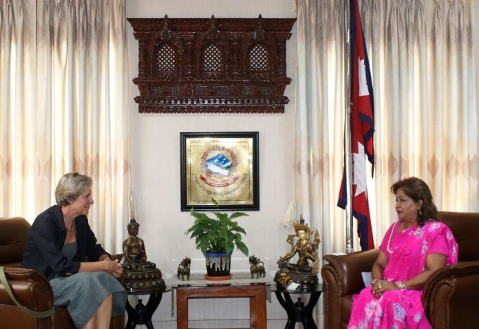 परराष्ट्रमन्त्री डा आरजु राणा देउवासँग नेपालका लागि युरोपियन युनियनका राजदूत भेरोनिक लोरेञ्जोले शिष्टाचार भेट गर्नुभएको छ । मन्त्रालयस्थित मन्त्री डा राणाको कार्यकक्षमा आज भएको सो भेटमा नेपाल र युरोपियन युनियनबीचको सम्बन्धका विविधि पक्षमा कुराकानी भएको मन्त्रालयले जानकारी दिएको छ । —