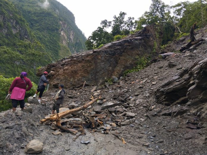 रघुगङ्गा गाउँपालिका–२ सिरुबारीमा खसेको पहिरोले बेनी–जोमसोम सडक अवरुद्ध भएको छ । आज बिहान ठूलो ढुङ्गासहित खसेको पहिरोका कारण सडक अवरुद्ध भएको हो । बेनी–जोमसोम–कोरला सडक आयोजनाका सबइन्जिनियर सोहनजङ्ग कार्कीले सडकमा खसेको ढुङ्गा फुटाउन ‘ब्रेकर’सहितको ‘डोजर’ पठाइन लागेको जानकारी दिनुभयो । “लोडरले पहिरो र ब्रेकरले ढुङ्गा फुटाउने तयारी गरेका छौँ”, आजै सडक खोल्ने लक्ष्यका साथ काम गरिने उल्लेख गर्दै उहाँले भन्नुभयो । स्तरोन्नतिको क्रममा रहेको बेनी–जोमसोम–कोरला सडक आयोजनाका निर्माण व्यवसायी, सडक विभागका उपकरण, प्राविधिक र मजदुर पहिरो पन्छाउन परिचालन भएका छन् । –––