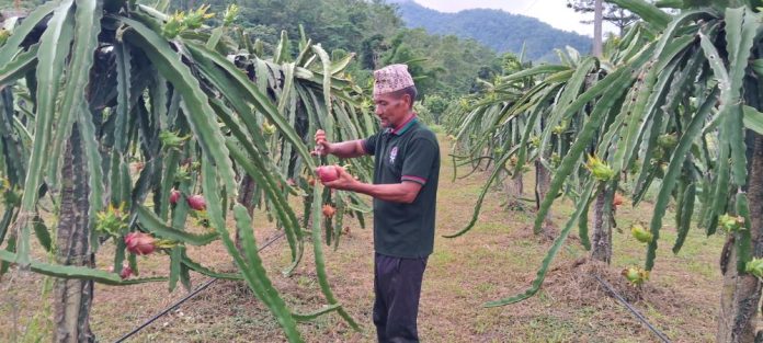 रुकुम पूर्वका दिलचन बुढाले १६ वर्ष विदेशमा काम गर्नुभयो । विदेशबाट फर्केपछि हाल उहाँ घोराही उपमहानगरपालिका–१८ अकबरेमा ड्रागनफ्रुट खेती गर्दै आउनुभएको छ । बुढासहित ६ जना ड्रागनफ्रुट खेतीमा संलग्न हुनुहुन्छ । छपन्न वर्षीय बुढा सोह्र वर्ष वैदेशिक रोजगारका क्रममा कतारमा बस्नुभयो । ड्रागनफ्रुट खेतीबाट आप्mनै देशमा मनग्य आम्दानी गर्न पाउँदा उहाँ खुशी हुनुहुन्छ । ड्रागनफ्रुट खेतीबाट सोचेभन्दा बढी आम्दानी गर्न सफल भएको बुढाको भनाइ छ । बजारीकरणको समस्या नहुँदा खेतीतर्फ आकर्षण बढ्दै गएको उहाँले बताउनुभयो । “ड्रागनफ्रुट रातो प्रतिकिलो रु चार सय तथा सेतो रु चार सय ५० का दरले घरबाटै बिक्री हुने गरेको छ”, उहाँले भन्नुभयो, ‘दैनिकजसो जिल्लाका धेरै ठाउँबाट माग आइरहन्छ, माग आए काठमाडाँै समेत पठाउने गरेको छु ।” परम्परागत कृषि कर्मबाट उपलब्धी हासिल नभएपछि ड्रागनफ्रुट खेती रोजेको बुढाले बताउनुभयो । करिब रु ८० लाख खर्च गरेर ६ जनाको समूहले ‘दङ्गाली ड्रागनपु्रmट फर्म’ दर्ता गरेर विगत छ वर्षदेखि दुई विघा जमिनमा व्यवसायिक रुपमा खेती गर्दै आएको छ । “वार्षिक रु २० लाखदेखि रु २५ लाखसम्म कारोवार हुन्छ”, बुढाले भन्नुभयो, ‘दुई बिघामा करिब एक हजार तीन सयभन्दा बढी विरुवा रहेका छन्, प्रति विरुवा ३० देखि ४० किलोसम्म उत्पादन हुँन्छ ।” वार्षिक वचत रु १५ लाखसम्म हुने गरेको छ ।’ ड्रागनफ्रुट खेतीबाट पर्याप्त आम्दानी हुन थालेपछि पछिल्लो समय जिल्लामा धेरै किसान त्यसतर्फ आकर्षित भएका छन् । तीन÷चार वर्षअघिसम्म प्रतिकिलो रु आठ सय ५० मा बिक्री हुने गरेको ड्रागनफ्रुटको वर्षेनि मूल्य घट्दै गएको बुढा बताउनुहुन्छ । उहाँ भन्नुहुन्छ– “चार वर्षअघिको जस्तै ड्रागनफ्रुट बिक्री हुन्थ्यो भने कमाउन विदेश जानुपर्ने थिएन् । विगतको तुलनामा दोब्बरले मुल्यमा कमी आएको छ ।” धेरै लगानी गरेर विदेश जाने र स्वदेशमा केही छैन भन्नेका लागि मेहनत गर्न सके ड्रागन खेतीबाट राम्रो आम्दानी लिन सकिन्छ भन्ने बुढा उदाहरण बन्नुभएको छ । अन्य तरकारी, पशुपालनलगायतका कृषि व्यवसायमा मेहनत अनुसारको लगानी हुन नसकेको गुनासो आउने गरेको छ । ड्रागनफ्रुट खेतीमा त्यो समस्या नरहेका अर्का व्यवसायी लालप्रकाश बुढा बताउनुहुन्छ । उहाँ पनि लामो समय वैदेशिक रोजगारमा रहनुभएको थियो । सधैँ विदेशमा बस्नुभन्दा स्वदेशमा केही गर्ने सोचका साथ सामूहिकरुपमा साथिहरुसँग यो व्यवसाय गरेको उहाँले बताउनुभयो । बुढाले भन्नुभयो, “दुःख नगरेर कृषिमा आम्दानी हुँदैन । आफैँ खटिएर काम गर्ने हो भने राम्रो आम्दानी लिन सकिन्छ ।” फर्ममा उत्पादन पनि राम्रो भएको र विक्रीका लागि घोराही बजारपनि नजिकै रहेकाले आफुलाई विक्रीका लागि समस्या नभएको उ