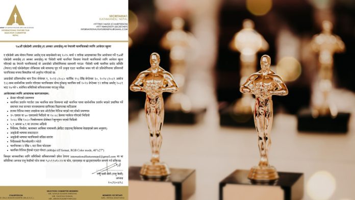द एकेडेमी अफ मोशन पिक्चर आर्टस् एन्ड साइन्सेस्ले ९७औँ एकेडेमी अवार्डस् (द अस्कर अवार्डस्) मा ‘विदेशी भाषी चलचित्र’ विधामा नेपाली चलचित्रको लागि आवेदन खुलाइएको छ ।मार्च २ तारिख आइतबारका दिन आयोजना हुने उक्त अवार्डको प्रतियोगितामा नेपाली चलचित्रलाई सहभागी गराउन ‘विदेशी भाषी चलचित्र छनोट समिति (नेपाल)’लाई एकेडेमीद्वारा तोकिएका सबै मापदण्ड पुग्ने एउटा उत्कृष्ट चलचित्र छनोट गरी सो प्रतियोगितामा प्रतिस्पर्धी चलचित्रका रूपमा सिफारिस गरी जानकारी गराउन द एकेडेमी अफ मोशन पिक्चर आर्टस् एन्ड साइन्सेस बाट अनुरोध पत्र प्राप्त भएकाले ९७औँ अस्कर अवार्ड प्रतियोगितामा सामेल हुन चाहने सबै नेपाली चलचित्र निर्देशक र निर्माताहरूलाई यस समितिको सचिवालयमा दर्ता गराउन आह्वान गरिएको हो ।९७औँ एकेडेमी अवार्डको प्रतिस्पर्धामा भाग लिन नोभेम्बर १, २०२३ (२०८० कार्तिक १५) देखि सेप्टेम्बर ३०, २०२४ (२०८१ असोज १४) सम्म सार्वजनिक प्रदर्शन गरिएका चलचित्रहरू योग्य हुनेछन् । २०२४ सेप्टेम्बर १२ तारिख अर्थात् मिति २०८१ भाद्र २७ गते दिनको ५ बजेभित्र यस समितिको सचिवालयमा दर्ता गराउनु पर्नेछ ।दरखास्तका साथमा सेन्सर गरिएको प्रमाणपत्र, हलमा रिलिज नभएर लाइसेन्स प्राप्त ओटीटीमा रिलिज भएको हो भने सोको प्रमाणपत्र, ३५ एमएम वा ७० एमएमको भिडियो वा २४–४८ फ्रेममा प्याकेज गरिएको भिडियो, यसै गरी २०४८ देखि १०८० पिक्सेलसम्म प्रोजेक्टर रेजुल्युसन भएको भिडियो, ५.१ अथवा ७.१ मा उपलब्ध अडियो, निर्देशक, निर्माता, कलाकार आदिका साथै सबै प्राविधिकहरूको नामावली (क्रेडिट टाइटल्स् सिनेमामा देखाइएको क्रममा), अंग्रेजी भाषामा सबटाइटल, अंग्रेजी भाषामा लेखिएको चलचित्रको संक्षिप्त सारांश, निर्देशकको फिल्मोग्राफी र फोटो, सम्बन्धित चलचित्रका ३ देखि ५ वटा स्थिर फोटाहरू, चलचित्ररिलिज हुँदाको एउटा पोस्टर चलचित्र प्रदर्शन गराउँदा उक्त चलचित्र सात दिनभन्दा बढी चलचित्र घरमा सार्वजनिक प्रदर्शन भएको प्रमाणित गर्ने समाचार तथा सञ्चार माध्यमहरूमा छापिएका विज्ञापनका कटिङहरू लगायतका माथि उल्लेखित सम्पूर्ण विवरणहरूको डिजिटल कपीमा समेत उपलब्ध गराउनु पर्ने एकेडेमी अवार्डस् (द अस्कर), विदेशी भाषी चलचित्र छनोट समिति (नेपाल), काठमाडौंले सार्वजनिक गरेको सूचनामा उल्लेख गरिएको छ ।९७औँ एकेडेमी अवार्डस् (द अस्कर अवार्डस्)को लागि‘विदेशी भाषी चलचित्र छनोट समिति (नेपाल)’मा फिल्ममेकर राजु केसी अध्यक्षतामा पाँच जना सदस्यहरू छायाकार मञ्जु कुमार श्रेष्ठ, फिल्ममेकर तथा फोटोग्राफर गौतम धिमाल, पत्रकार तथा लेखक जीवन पराजुली, फिल्ममेकर तथा कलाकार टोपेन्द्र बिस्ट तथा सचिव प्रोडक्सन डिजाइनर ऋतिका भट्टराई रहेका छन ।विदे