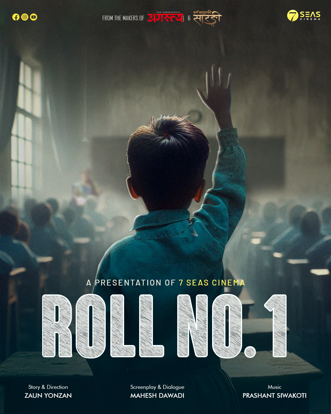 काठमाडौं । बाल मनोविज्ञानमा आधारित रहेर फिल्म ‘रोल नं १’ निर्माण हुने भएको छ । सेभेन सिज सिनेमाको प्रस्तुती रहने फिल्मको फस्टलुक सार्वजनिक गर्दै निर्माणको घोषणा गरिएको हो ।फिल्ममा जोन योञ्जनको कथा र निर्देशन रहनेछ । फस्टलुकमा कक्षाकोठामा लास्ट बेन्चबाट एक बालक हात उठाएर आफ्नो उपस्थिति जनाइरहेको देखाइएको छ । उसको पृष्ठभूमिमा निलो सर्ट लगाएका विद्यार्थी र उनीहरुलाई पढाईरहेकी एक शिक्षिका देख्न सकिन्छ ।फिल्ममा महेश दवाडीको पटकथा तथा संवाद र प्रशान्त शिवाकोटीको संगीत रहनेछ । सेभेन सिज इन्टरटेनमेन्टले निर्माण गरेको फिल्म ‘अगस्त्य च्याप्टर १’ प्रदर्शनमा आइसकेको छ । यो व्यानरको अर्को फिल्म ‘पूर्ण बहादुरको सारङ्गी’को सुटिङ पुरा भई यतिबेला पोस्ट प्रोडक्सनमा छ ।
