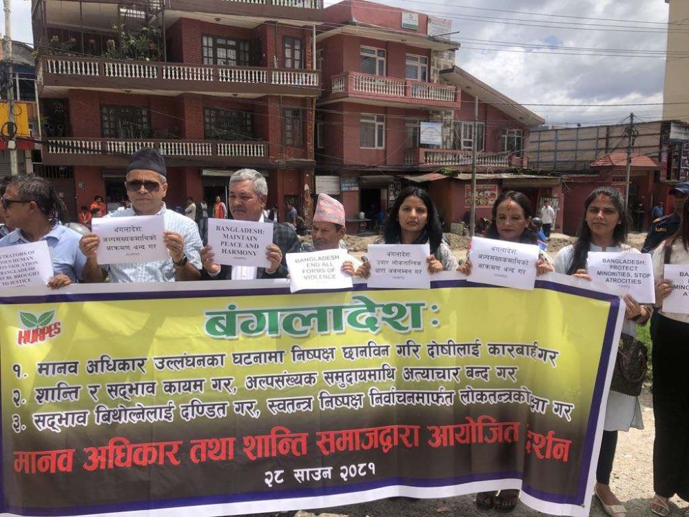 सोमबार दिउँसो मानव अधिकार तथा शान्ति समाजद्वारा काठमाडौं बसुन्धारास्थित बंगलादेशी राजदुतावास अगाडि आधा घण्टा प्रदर्शन गरेको हो ।