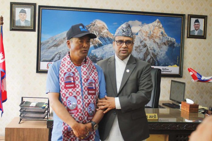 मन्त्री पाण्डेले शुक्रबार आरोही शेर्पालाई मन्त्रालयमा स्वागत गरेका हुन् । सोलुखुम्बुको खुम्बु गाउँपालिका घर भएका शेर्पाले पाकिस्तानमा रहेको विश्वको १२ औं अग्लो हिमाल ब्रोड पिकको एउटै सिजनमा दुई पटक आरोहण गरेका थिए ।