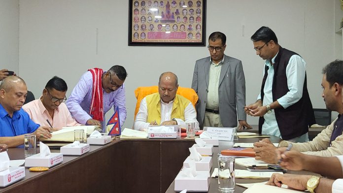 जनकपुरधाम । मधेश प्रदेशका मुख्यमन्त्री सतिशकुमार सिंहले प्रदेश मन्त्रिपरिषद् सदस्यहरूसँग कार्यसम्पादन सम्झौताका लागि करार गरेका छन् ।