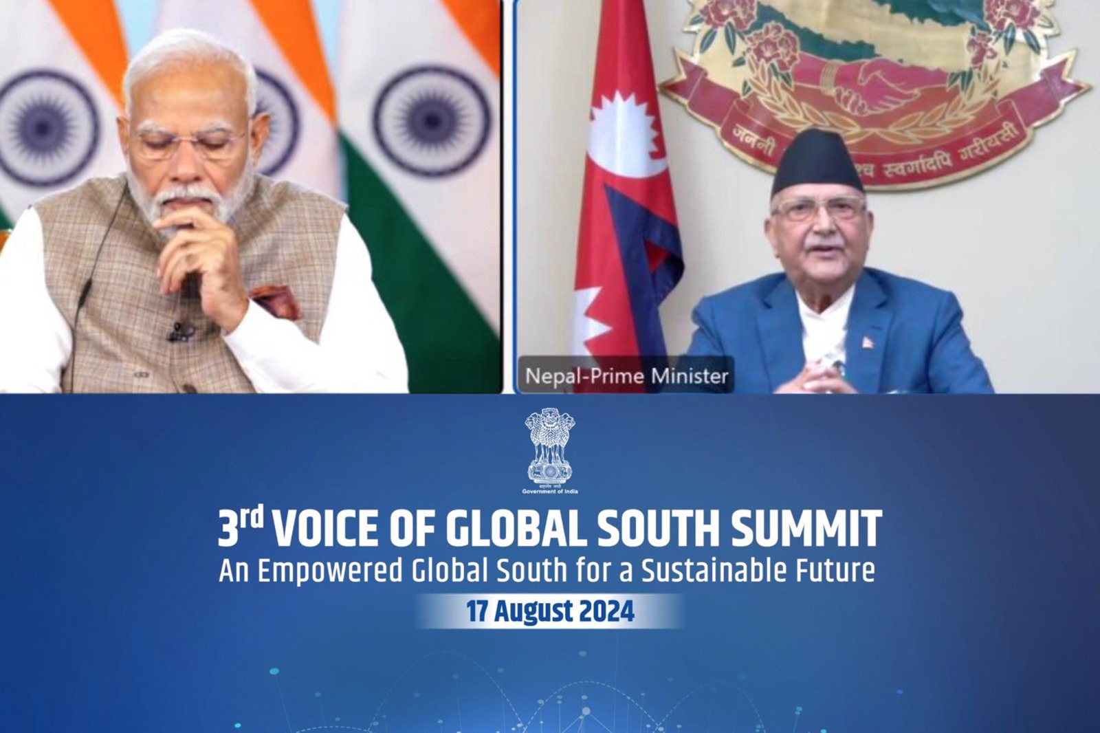 काठमाडौं । प्रधानमन्त्री केपी शर्मा ओलीले भारत सरकारद्वारा आयोजित तेस्रो शृङ्खलाको ‘ग्लोबल साउथ समिट’ को उद्घाटन सत्रलाई आज भर्चुअलरुपमा सम्बोधन गरेका छन् ।