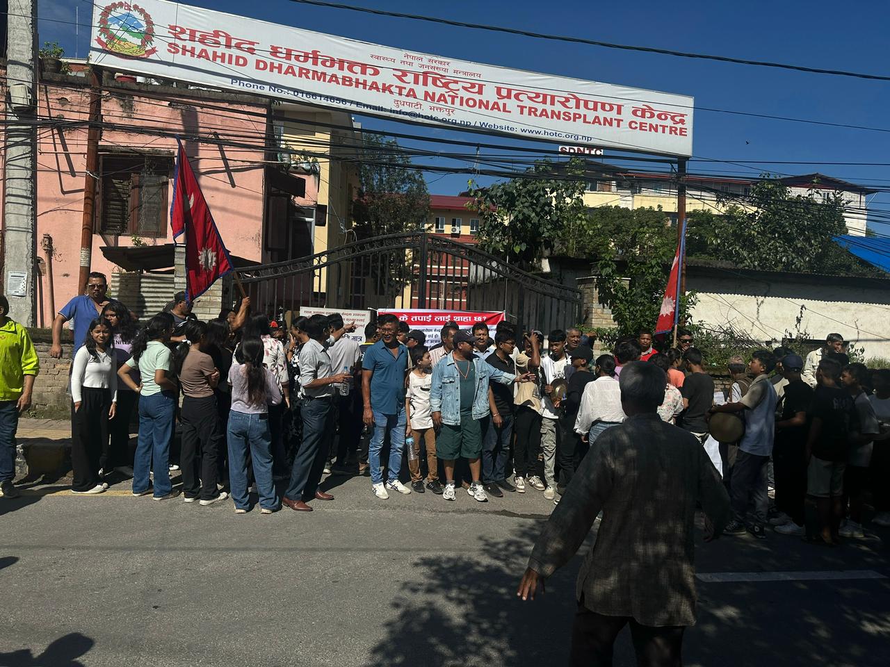 भक्तपुरको शहीद धर्मभक्त राष्ट्रिय प्रत्यारोपण केन्द्रमा भएको अनियमितताविरुद्ध स्थानीयबासीले आन्दोलन चौथो दिनपनि जारी राखेका छन् । स्थानीयले शनिबार विहान वाजागाजासहित अस्पताल क्षेत्रमा प्रदर्शन गरेका छन् ।