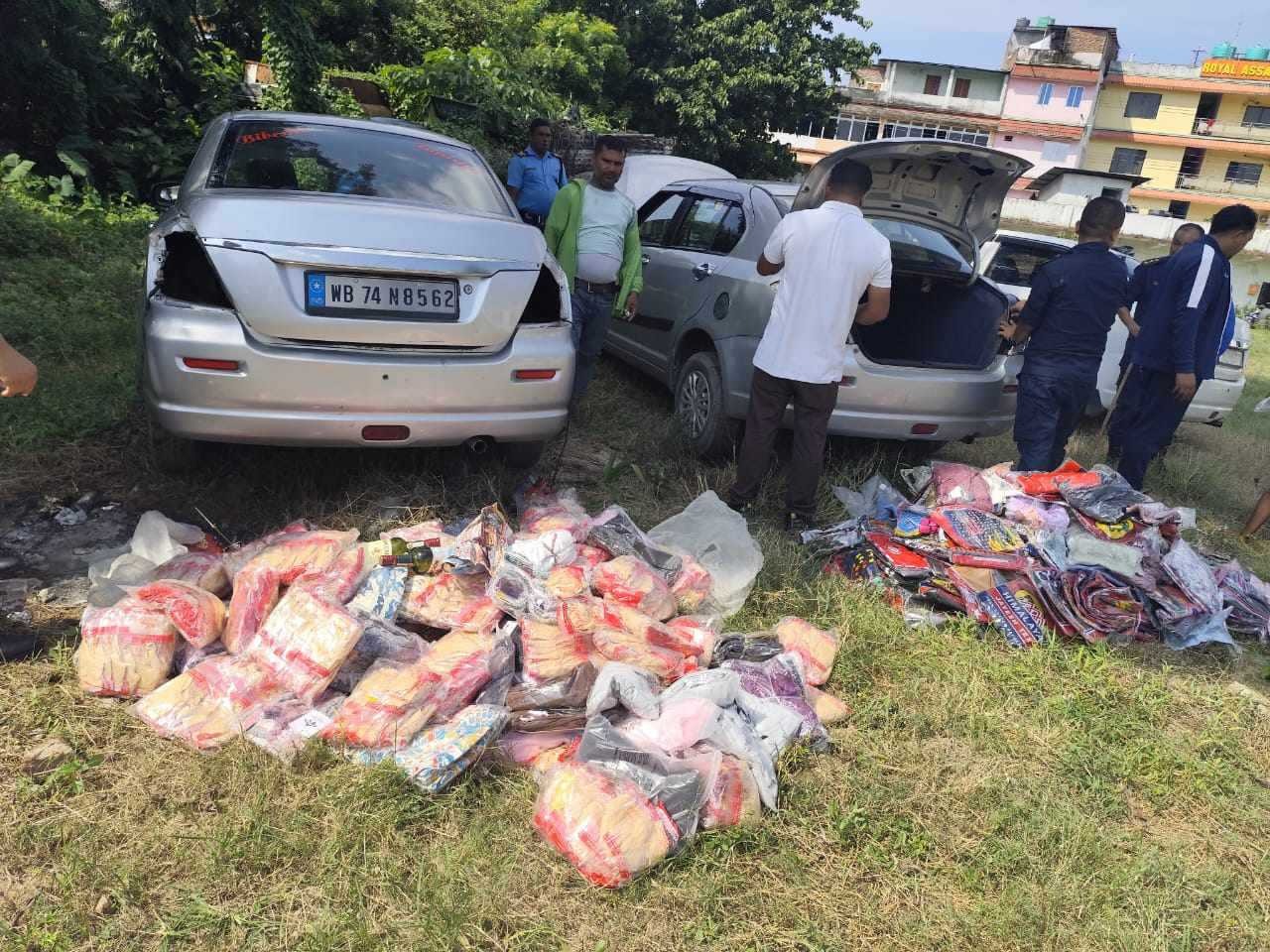बरामद कपडामा पुरुषको टाउजर ११० पिस, लेडिज टाउजर ४२ पिस, रुमाल १ हजार २५० पिस, लेडिज सर्ट २२ पिस, कुर्था ३२ पिस, भेष्ट ५३ पिस, लेडिज ब्रा ५२८ पिस, लेडिज भेष्ट १८ पिस, कुर्थी १० पिस र लेडिज सर्ट १७ पिस रहेका छन् । प्रहरीले बरामद गरेको कारको मूल्य अन्दाजी २४ लाख मुल्यांकन गरेको छ । कारसहित कपडाको मुल्य २९ लाख ५० हजार १०० रहेको जनाएको छ ।