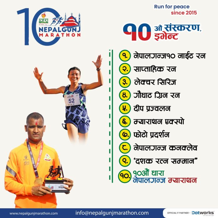 धारा नेपालगञ्ज म्याराथनको १०औं संस्करणलाई उत्सवमय बनाउन ‘दशौंमा दश इभेन्ट’ गरिने भएको छ ।