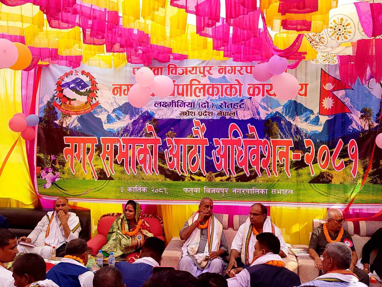 रौतहटका फतुवा विजयपुर नगरपालिकाले कार्तिक ३ गते आज शनिवारको दिन आफ्नो आठौ नगर सभा अधिवेशन गरेको छ । विभिन्न राजनितिक प्रतिशोध तथा विवादका कारण हुन नसकेको नगर सभा आज सभ्य तथा भव्य रुपमा सम्पन्न भएको छ । नगर सभाको अध्यक्षता पालिकाका कार्यवाहक मेयर अम्बया खातुनले गरेका थिईन भने प्रमुख अतिथीका रुपमा मधेश प्रदेशका अर्थ मन्त्रा सुनिल प्रसाद यादव (जितेन्द्र) उपस्थित भएका थिए । कार्यक्रमका प्रमुख अतिथी अर्थमन्त्री सुनिल यादवले पानसमा बति बाली रिबन काटी कार्यक्रमको उदघाटन गरेका थिए । कार्यक्रममा स्वागत मन्तव्य राख्दै पालिकाका प्रमुख प्रशासकिय अधिकृत प्रमोद कुमार गुप्ताले बितिको बडा दशै र आउन लागेको शुभदिपावली तथा छठ पर्वको शुभकानमा दिदै प्रदेश बाट हुन सक्ने सहयोगका लागि ध्यानाकर्षण गराउदै आफ्नो स्वागत मन्तव्य अन्तय गरेका थिए । नगर सभाको आठौ अधिवेशनमा दुधिआवा मा वि का शिक्षक रंजन खरेलले अनुमानित बजेट प्रस्तुत गरेका थिए ।