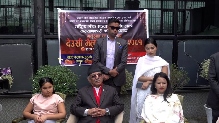 राष्ट्रिय लोक संगीतकर्मी नेपालले पूर्व प्रधानमन्त्री एवं नेकपा माओवादी केन्द्रका अध्यक्ष पुष्पकमल दाहाल प्रचण्डको निवास खुमलटार पुगेर देउसी–भैलो खेलेको छ । लोक संस्कृतिको संरक्षण र प्रचार प्रसार गरी शान्ती, प्रेस स्वतन्त्रता, र पत्रकारको हकहितको संरक्षण गर्ने उद्देश्यले शीर्ष नेताहरुको घरमा देउसी–भैलो कार्यक्रम तय भएअनुसार प्रधानमन्त्री निवासमा देउसी खेलिएको हो ।देउसी–भैलाको कार्यक्रममा प्रधानमन्त्री निवास बालकोट, नेकपा माओवादी केन्द्रका अध्यक्ष पुष्पकमल दाहाल प्रचण्डको निवास खुमलटार र नेकपा एकीकृत समाजवादीका अध्यक्ष माधवकुमार नेपालको निवास कोटेश्वर र कांग्रेस सभापति शेर बहादुर देउवाको निवास बुढानिलकण्ठमा देउसी–भैलो खेल्ने कार्यक्रम रहेको बताइएको छ ।