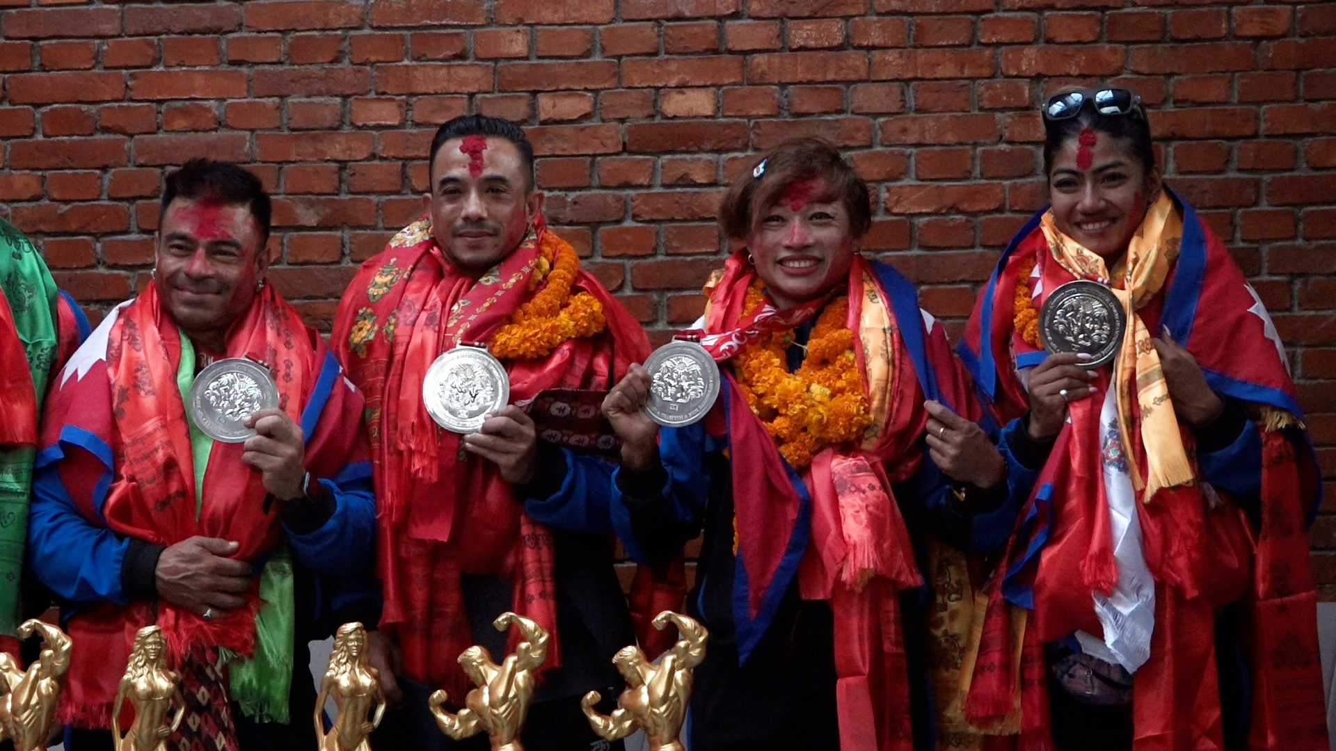 च्याम्पियनसिपमा पदक विजेता बडीबिल्डरहरु रुजेश शाही, प्रज्वलमान शाक्य र रजनी श्रेष्ठको टोलीलाई त्रिभुवन अन्तरराष्ट्रिय विमानस्थलमा भव्य स्वागत गरिएको छ ।