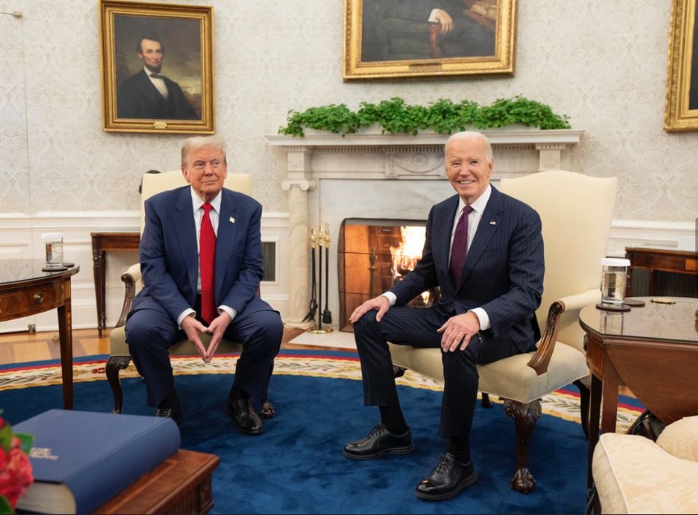 अमेरिकाका नवनिर्वाचित राष्ट्रपति डोनाल्ड ट्रम्प र वर्तमान राष्ट्रपति जो बाइडेनबीच भेटवार्ता भएको छ । नेपाली समय अनुसार गएराति भएको भेटवार्तामा सत्ता हस्तान्तरणका विषयमा महत्वपूर्ण छलफल भएको अन्तर्राष्ट्रिय सञ्चारमाध्यमहरुले जनाएका छन् । बैठकपछि ह्वाइट हाउसले एक विज्ञप्ति जारी गर्दै अमेरिकामा शक्ति हस्तान्तरण व्यवस्थित र शान्तिपूर्ण हुने प्रष्ट पारेको छ ।