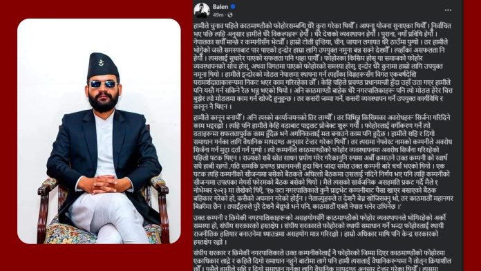 एक पटक त्यहि कम्पनीको सौजन्यमा बसेको बैठकले अघिल्लो बैठकमा उसलाई नदिने निर्णय भए पनि त्यहि कम्पनीको सौजन्यमा उपत्यका मेयर्स फोरमको बैठक बसेको थियो । मैले त्यसको सार्वजनिक असहमति प्रकट गर्दै मैले १ नोभेम्बर २०२३ मा लेखेको थिएँ, ु१७ वटा नगरपालिकाले कुनै प्राइभेट कम्पनीबाट पैसा खाएर बसाएको बैठक बहिकार गरेको हो, कसैको अपमान गरेको होईन । नेताज्युहरुले त देशनै बेच्न खोजिसक्नु भो, तर काठमाडौं महानगर बिक्रीमा छैन । तपाईंहरुले पुरै देशनै बेच्नुभो भने पनि, काठमाडौं एक्लै नेपाल भनेर उभिनेछ ।ु