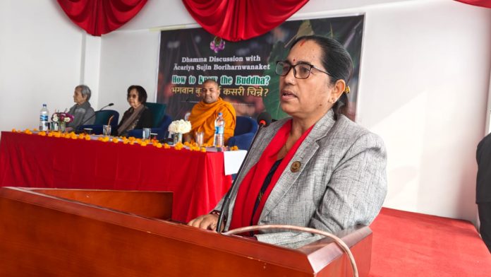 ‘विश्वको एक पवित्र भूमी मध्ये बुद्धको जन्मभूमि नेपाल रहँदै आएको तथ्य सर्व विदितै छ,’, उनले भनिन् ‘बुद्धले तय गरेका अष्ठमार्गको आधारमा हाम्रो समाजको विकासक्रम अघि बढिरहेको छ भने बुद्धले पहिल्याउनु भएको चार आर्य सत्यलाई पछ्याउन सकियो भने संसारबाट दुःख निवारण हुन्थ्यो होला। जो आज पारस्पारिक हित र बहुपक्षीय सहसम्बन्धको लागि अपरिहार्य सेतु बनेको छ ।’