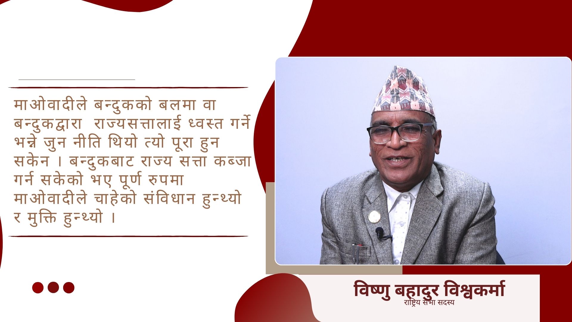 माओवादीले बन्दुकको बलमा वा बन्दुकदवरा राज्यसत्तालाई ध्वस्त गर्ने भन्ने जुन नीति थियो त्यो पूरा हुन सकेन । बन्दुकबाट राज्य सत्ता कब्जा गर्न सकेको भए पूर्ण रुपमा माओवादीले चाहेको संविधान हुन्थ्यो र मुक्ति हुन्थ्यो ।