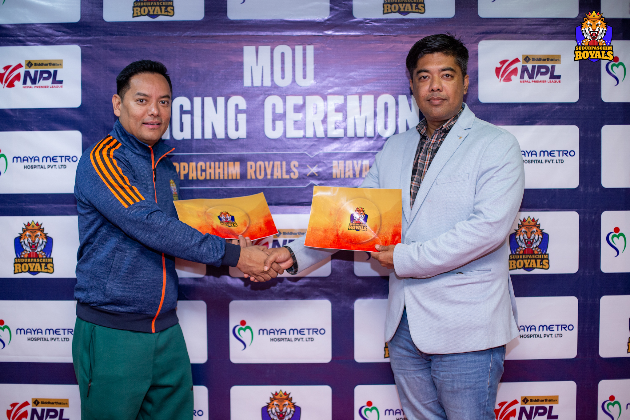 सिद्धार्थ बैंक नेपाल प्रिमियर लिग (एनपिएल) टोली सुदूरपश्चिम रोयल्स र माया मेट्रो अस्पतालबीच प्रायोजन सम्झौता भएको छ ।माया मेट्रो र रोयल्सबीच मेडिकल पार्टनरका लागि एक कार्यक्रममाझ सम्झौता भएको हो । सम्झौता पत्रमा रोयल्सका मालिक स्वतन्त्र प्रताप शाह र अस्पतालका अध्यक्ष धिरेन्द्र साउदले हस्ताक्षर गरेका हुन् ।