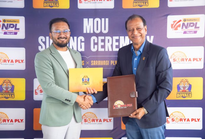 सिद्धार्थ बैंक नेपाल प्रिमियर लिगको लागि फ्रेन्चाइज टोली सुदूरपश्चिम रोयल्सले सूर्य पलाईसँग प्रायोजन सम्झौता गरेको छ ।रोयल्सले स्ट्रेन्थ पार्टनरको रुपमा सूर्य प्लाईको साथ पाएको हो । सूर्य प्लाईको तर्फबाट सवारागी प्लाईवुड इन्डस्ट्रिजका प्रबन्ध निर्देशक देव आनन्द सवारागी र रोयल्सका प्रमुख कार्यकारी अधिकृत प्रकाश खड्काले सम्झौतामा हस्ताक्षर गरेका हुन् ।