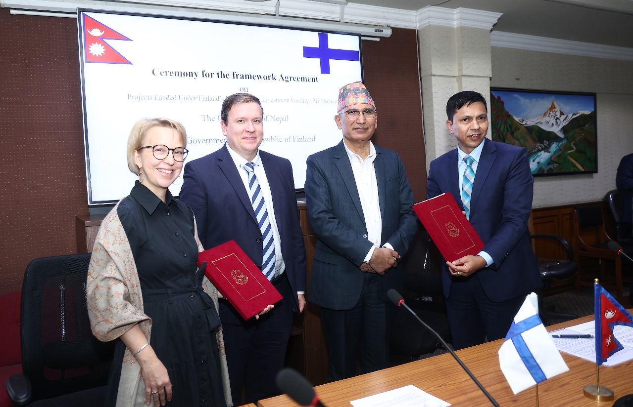 फिनल्याण्डको सार्वजनिक लगानी सुविधा योजनाअन्तर्गत वित्त परिचालन हुने परियोजनाको सम्झौतामा अर्थ मन्त्रालयका अन्तर्राष्ट्रिय आर्थिक सहायता समन्वय महाशाखा प्रमुख धनीराम शर्मा र नेपालका लागि फिनल्याण्डका राजदूत रिना रिक्का हेइकाले हस्ताक्षर गरेका हुन् ।