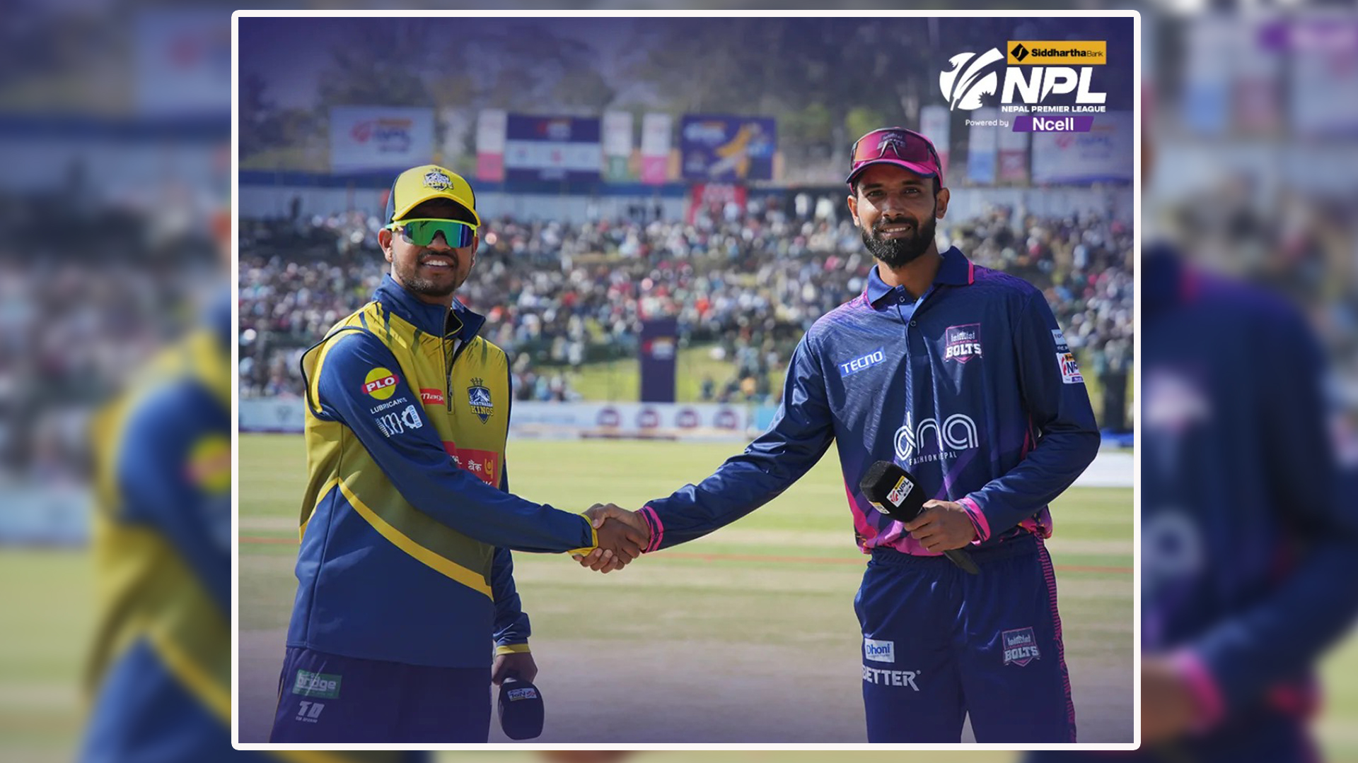 आजबाट सुरु भएको सिद्धार्थ बैंक नेपाल प्रिमियर लिग(एनपीएल) को पहिलो खेलमा विराटनगर किंग्सले जनकपुर बोल्ट्सलाई १ सय २८ रनको लक्ष्य दिएको छ ।जनकपुरका कप्तान अनिल शाहले टस जितेर बलिङ रोजेसँगै विराटनगरले पहिले ब्याटिङ गरेको हो । खेलमा विराटनगर किंग्सका ब्याटर मार्टिन गप्टिलले ४३ बलमा ५५ रन बनाएर अर्धशतक पूरा गरेका थिए ।एनपीएल नेपाल क्रिकेट संघ(क्यान) को आयोजनामा इतिहासमा नै पहिलो पटक आयोजना भएको हो । विराटनगर किंग्सका कप्तानमा सन्दीप लामिछाने छन् भने जनकपुरको कप्तानमा अनिल शाह रहेका छन् ।