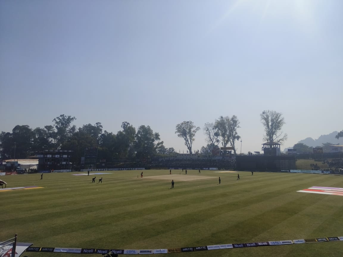 काठमाडौंको पहिलो विकेटका रुपमा ओपनर स्टेफन स्किनाजीलाई सोहेल तन्भिरले आउट गराए । स्किनाजी २ बलमा ४ रन बनाएर अमरसिंह राउटेलाको हातबाट समातिए ।