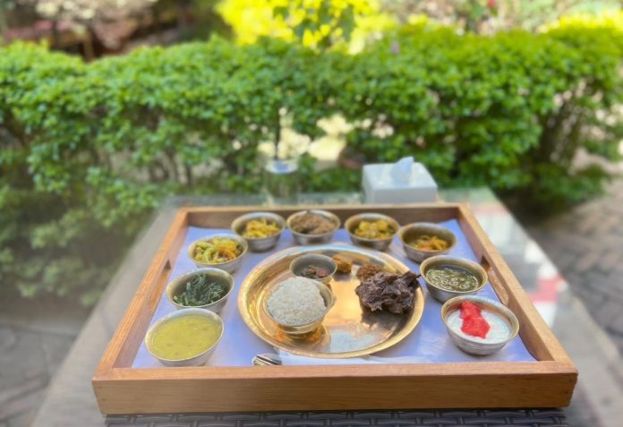 पर्यटकीय क्षेत्र ठमेलस्थित ठमेल इको रिसोर्ट परिसरमा ‘द गोल्डेन थाली’ सुरू भएको छ । लामो समय पर्यटन र सेवा उद्योमा क्रियाशील अर्थ बाउण्ड एक्सपेडिसनका राजन सिंखडा र मकालु एड्भेञ्चरका मोहन लम्सालको अग्रसरता र शेफ नेपाल टिमको परिकल्पनामा ठेट नेपाली स्वाद पस्कने उद्देश्यका साथ ‘द गोल्डेन थाली’ सुरु गरिएको हो ।नेपालको मध्य पहाडी क्षेत्रको खानालाई प्रवद्र्धन तथा प्रचारप्रचार गर्ने तथा सम्पूर्ण नेपाललाई प्रतिनिधित्व गर्ने गरी थाली तयार गरिएको ठमेल इको रिसोर्टका सञ्चालकद्वय राजन सिम्खडा तथा मोहन लम्सालले बताए ।