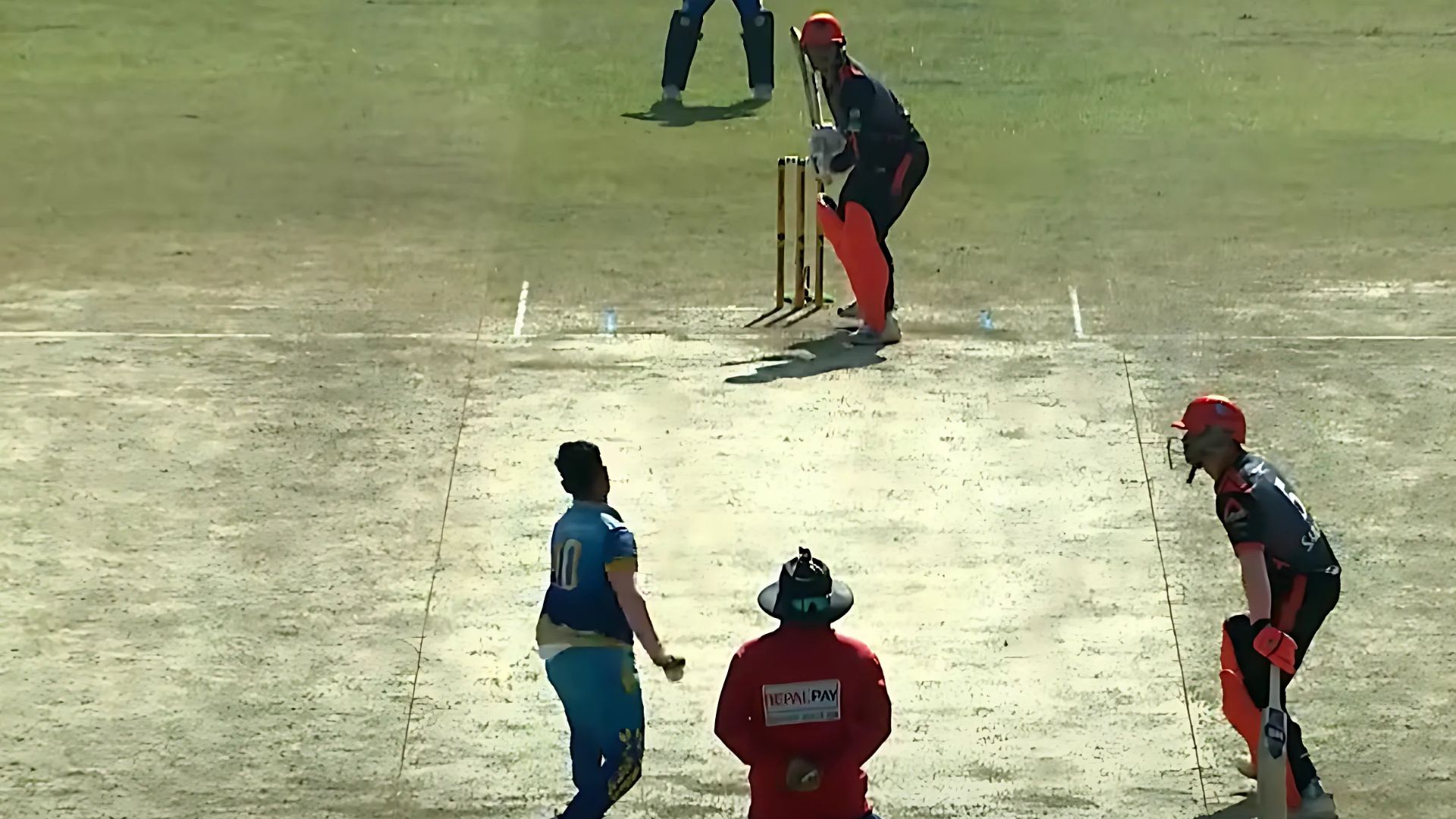 चाल्डिक वाल्टन २२ बलमा ४ चौका र ३ छक्काको सहयोगमा ४६ रन जोड्दै नट आउट रहे । देव खनाल ३ बलमा ३ रन जोड्दै रन आउट भए । दोस्रो ओभरको पहिलो बल सामना गर्ने क्रममा रित गौतम आउट भएका हुन् । इनिङको पहिलो बल सामना गर्ने क्रममा रित सोहेल तन्भिरको बलमा विकेटकिपर विपिन रावलबाट समातिए ।