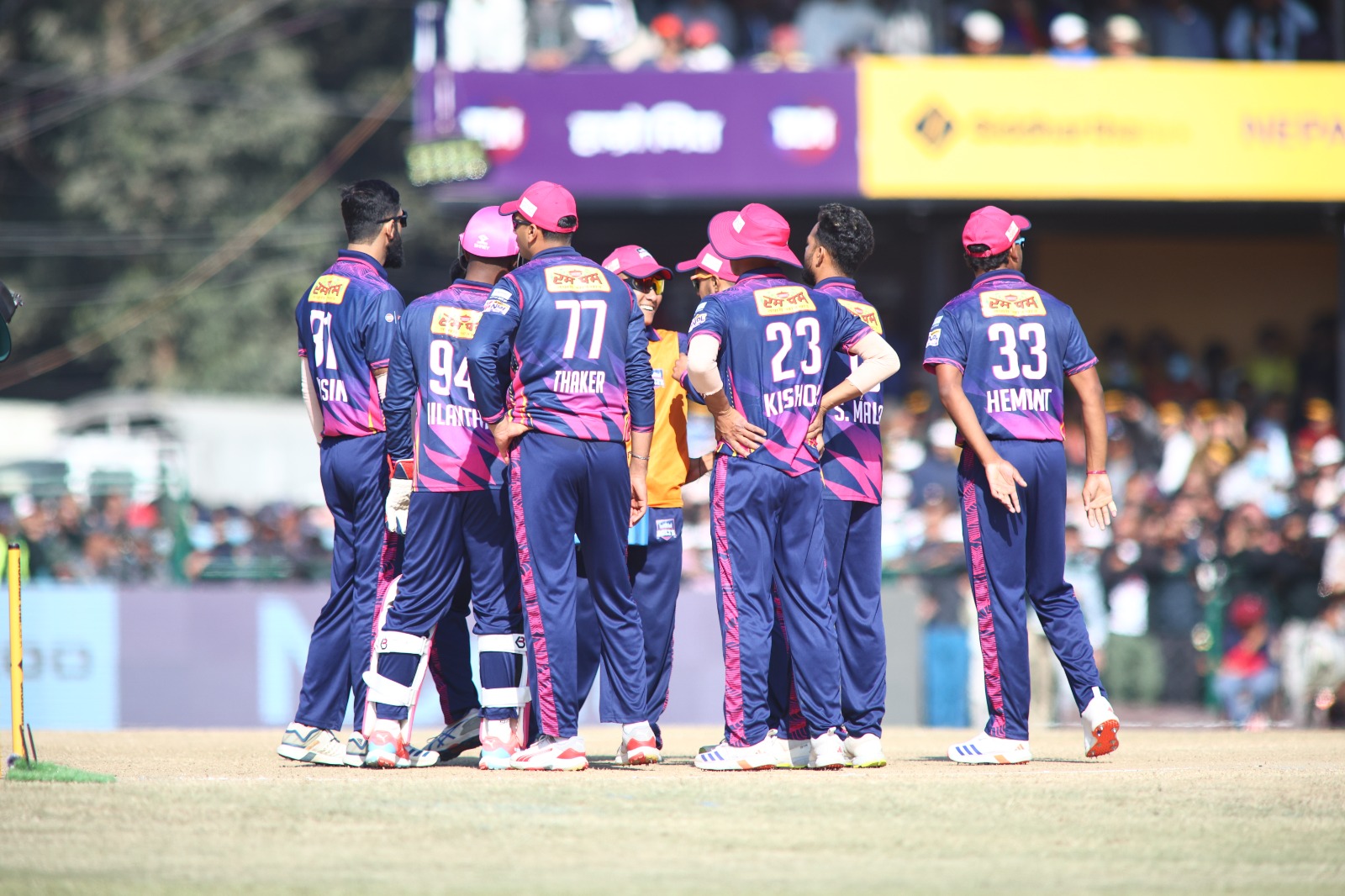 कप्तान दीपेन्द्रसिंह ऐरी ९, आरिफ शेख १ तथा स्कट कुग्गेलेइन ८ रनमा आउट भए । जनकपुरका लागि किशोर महतो र मोहम्मद मोहसिनले समान ३, ललितनारायण राजवंशी र जेम्स निशमले समान १ विकेट लिए ।