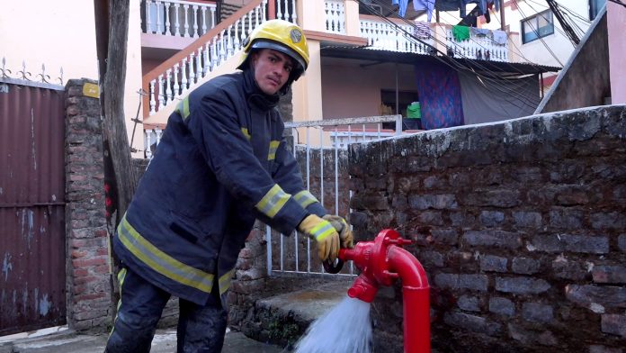 उनले भने, ‘साँघुरा गल्लिहरुमा काठमाडौं महानगरपालिकाले विपद् व्यवस्था विभाग अन्र्तगतका बजेटहरुबाट फायर फाइटिङ पाइप लाइन ९ड्राइ राइजर० जडान गरिएको हो । विभिन्न वडाहरुमा जहाँ दमकल जान सक्दैन । जसले आगलागि हुँदाखेरी आगो निभाउका निम्ती पानिको अत्यन्त आवश्यक हुन्छ । पानिलाई निकाल्नको निम्ती ड्राइ राइजरको सहयताले पानि छिराउने गर्छौँ ।’