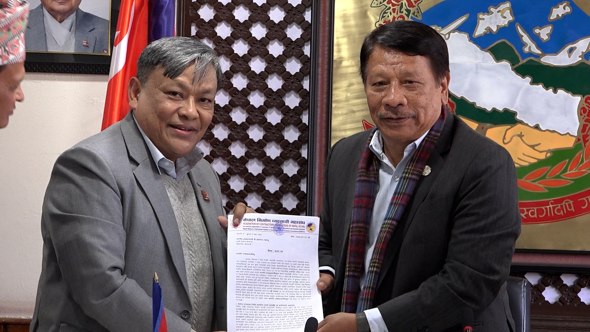 नेपाल निर्माण व्यवसायी महासंघले उपप्रधानमन्त्री एवं सहरी विकास मन्त्री प्रकाशमान सिंहलाई ज्ञापन पत्र बुझाएको छ ।