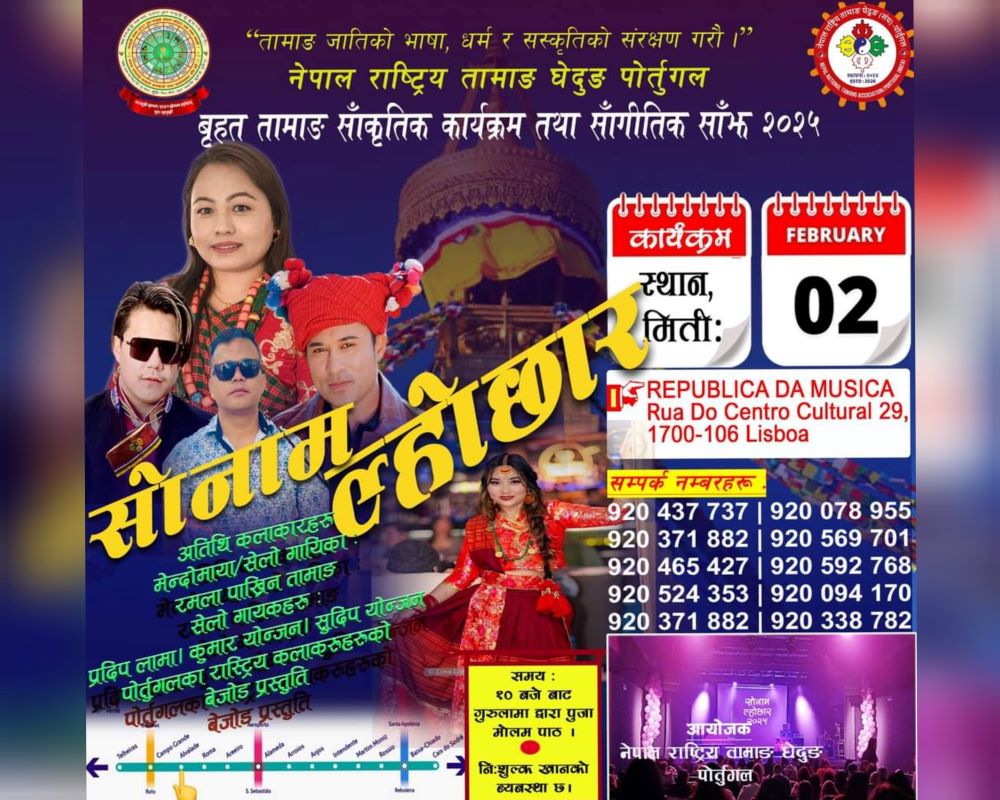 लिस्बन । युरोपेली मुलुक पोर्चुगलमा रहेका तामाङ समुदायले विशेष कार्यक्रमका साथ सोनाम ल्होछार (नयाँ वर्ष) मनाउने भएका छन् ।