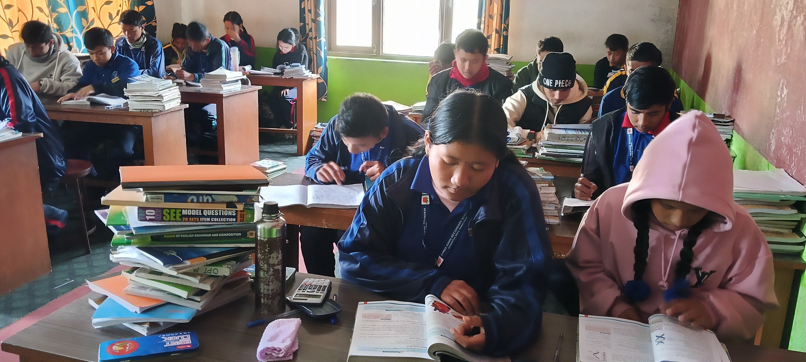 विद्यालयका कोठा र सिँढीमा समेत कार्पेट ओछ्याइएको छ । विद्यार्थीहरू बाहिर नै जुत्ता खोलेर कक्षमा प्रवेश गर्छन् । कक्षा कोठामा ठूलो कक्षामा पढ्ने विद्यार्थीको लागि एक विद्यार्थी एक कुर्सीको व्यवस्था छ ।