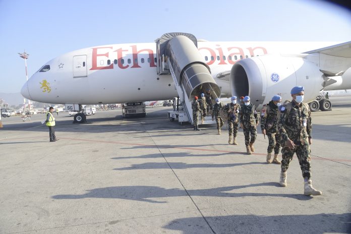 संयुक्त राष्ट्र संघको आव्हानमा शान्ति स्थापना कार्यको लागि दक्षिण सुडानमा २१३ जना नेपाली शान्ति सैनिकहरूको टोली मिसन इलाकातर्फ प्रस्थान गरेका छन् ।
